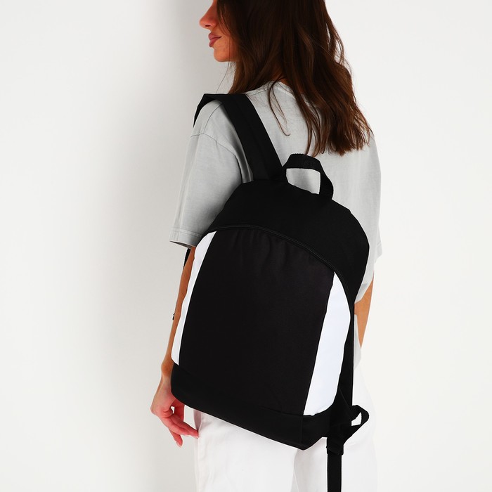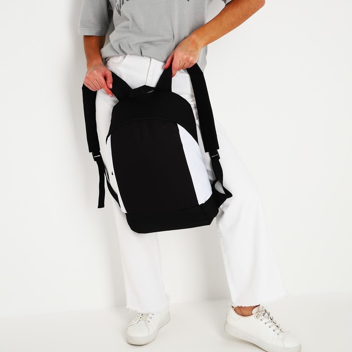 Рюкзак школьный текстильный 46×30×10 см, вертикальный карман, черно-белый — Характеристики