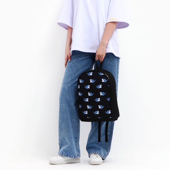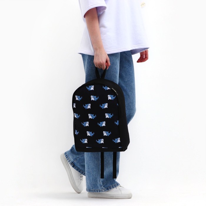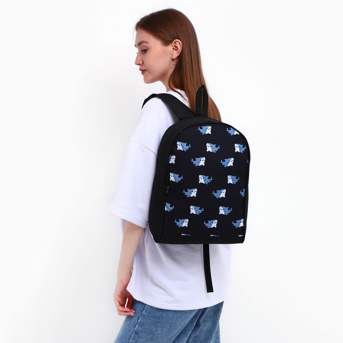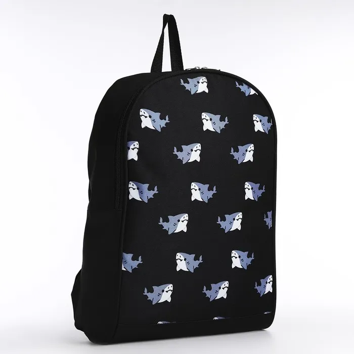 Рюкзак школьный текстильный «Акулы», 38×14×27 см, чёрный — Характеристики