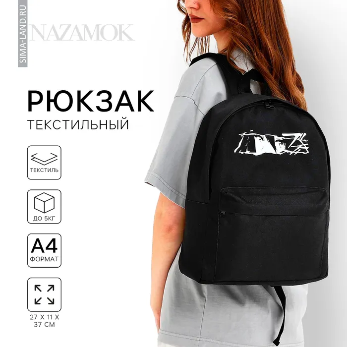 Рюкзак школьный текстильный «Аниме», с карманом, 27×11×37, чёрный — Характеристики