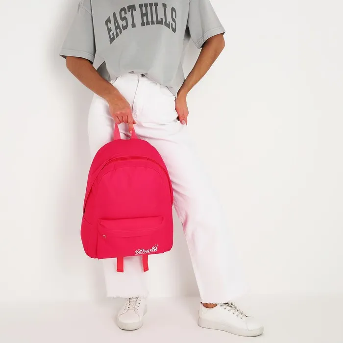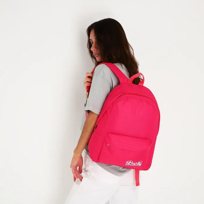 Рюкзак школьный текстильный Basic, с карманом, розовый — Характеристики