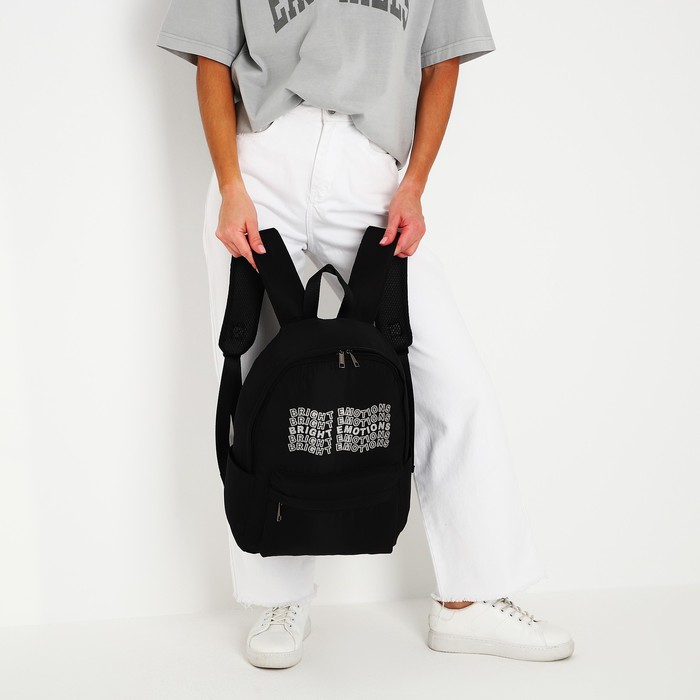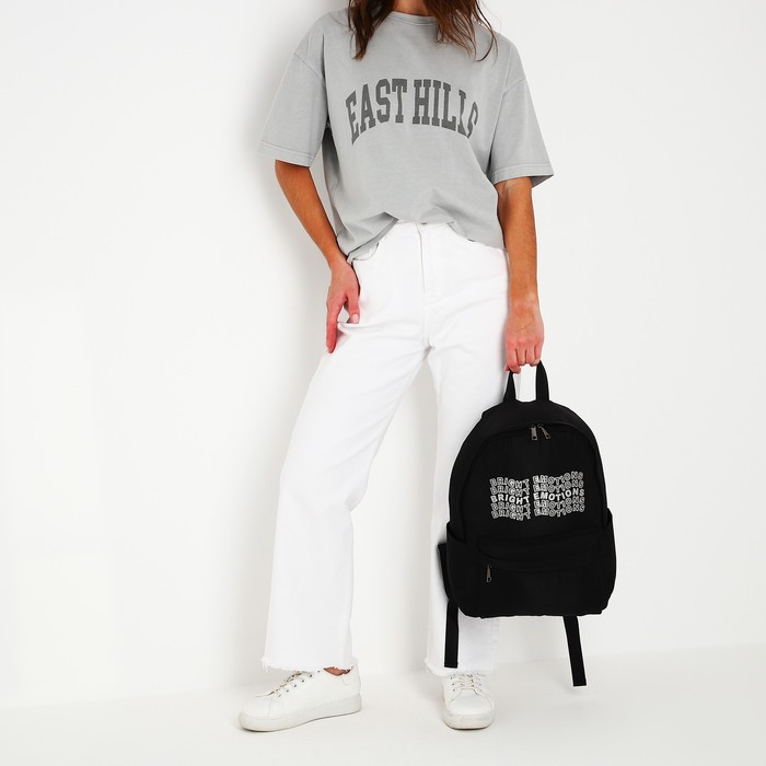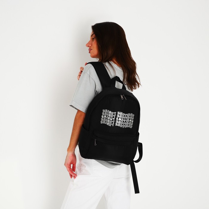 Рюкзак школьный текстильный Bright emotions, чёрный, 38×12×30 см — Характеристики