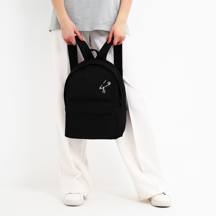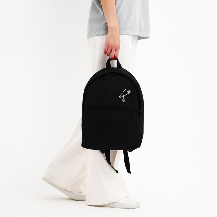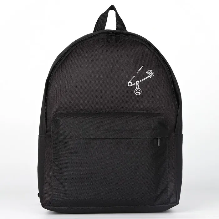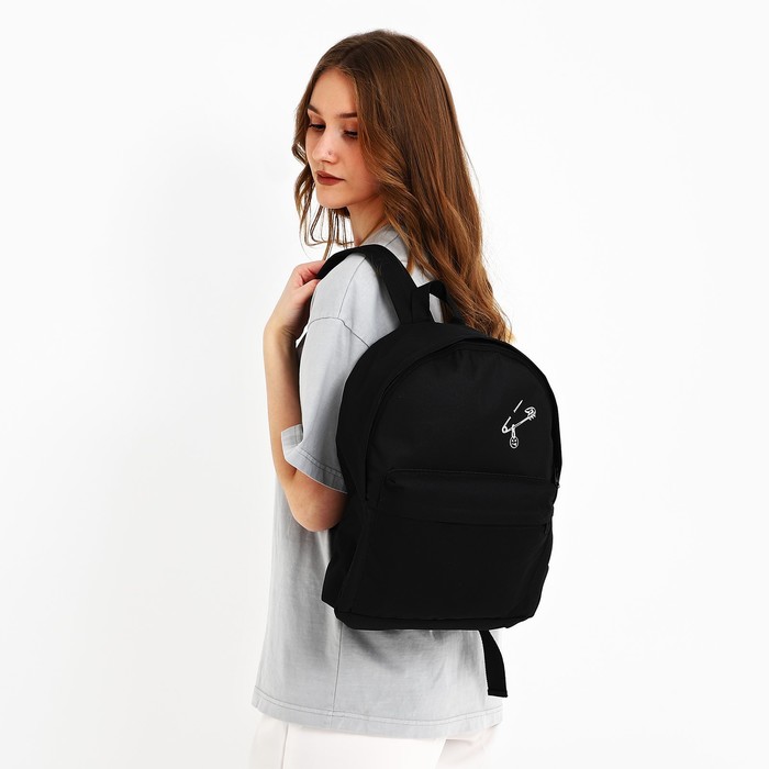 Рюкзак школьный текстильный «Булавка», с карманом, 27×11×37, чёрный — Характеристики