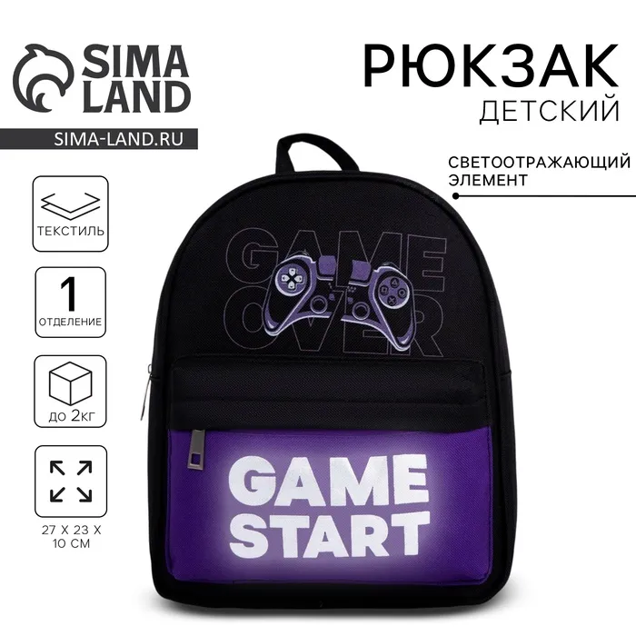 Рюкзак школьный текстильный c карманом «Джойстик», светоотражающие элементы, 27×23×10 см — Характеристики