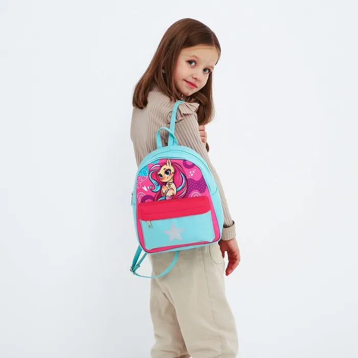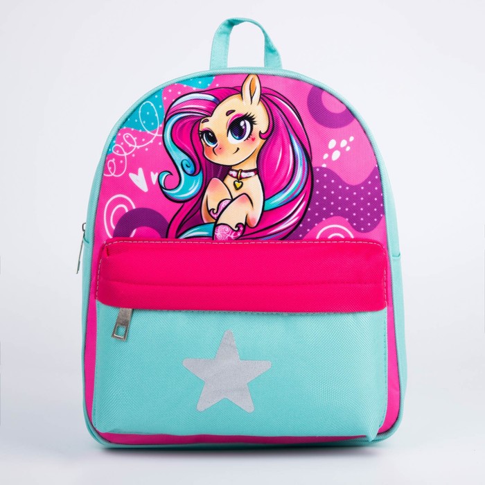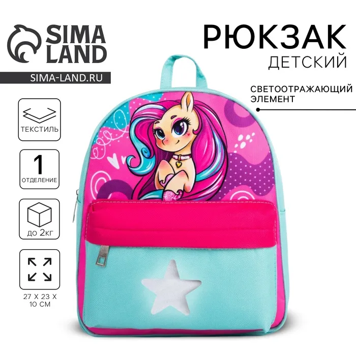 Рюкзак школьный текстильный c карманом «Волшебная лошадка», светоотражающие элементы, 27×23×10 см — Характеристики