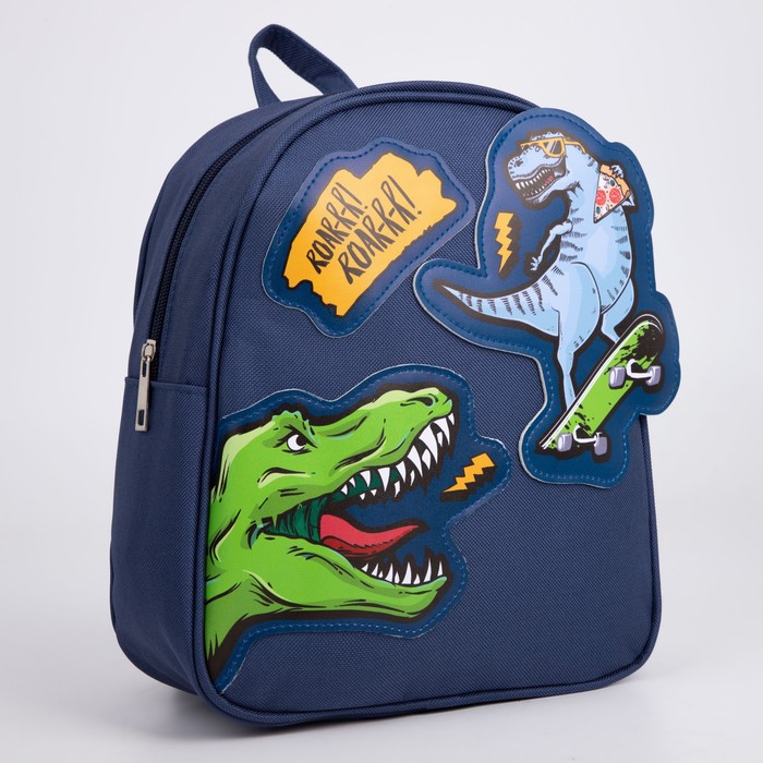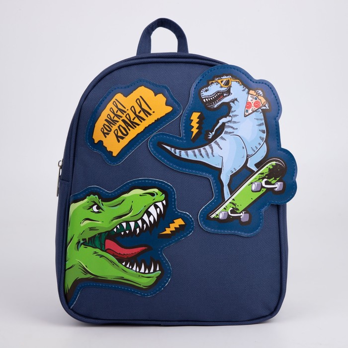 Рюкзак школьный текстильный «Динозавры», с нашивками, 27х23×10 см