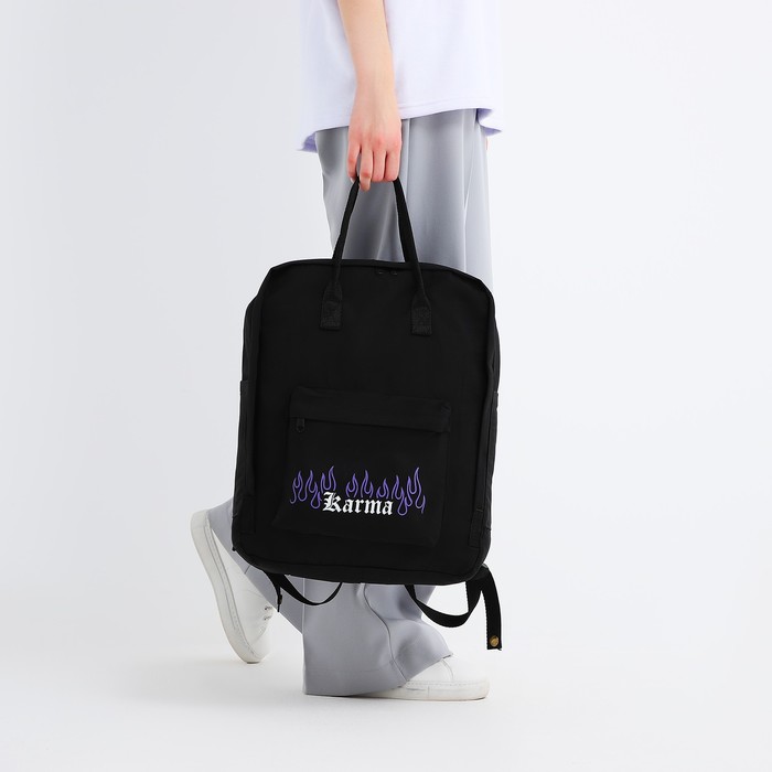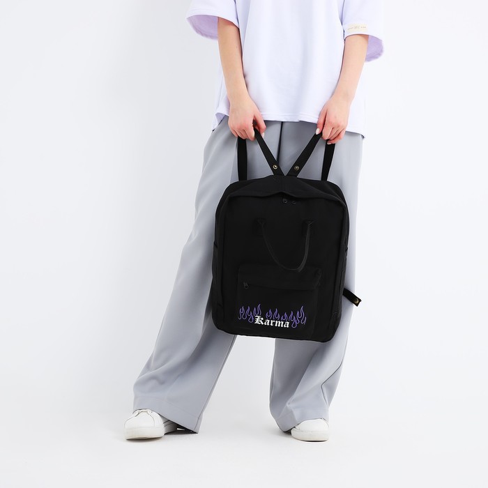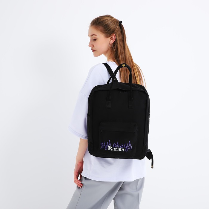 Рюкзак школьный текстильный Karma, 38×27×13 см, чёрный — Характеристики