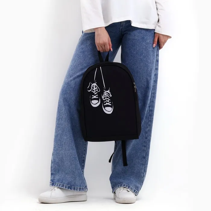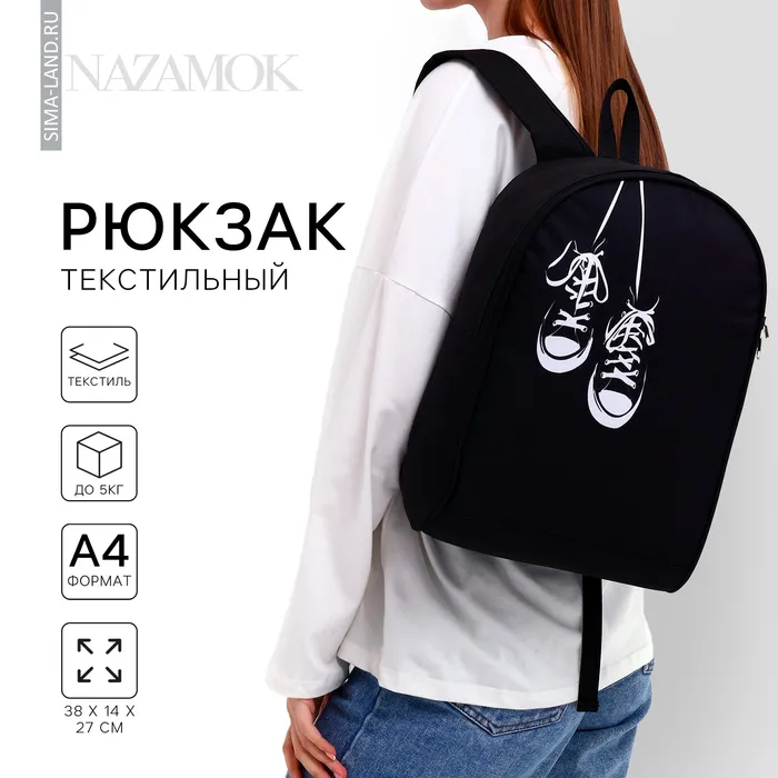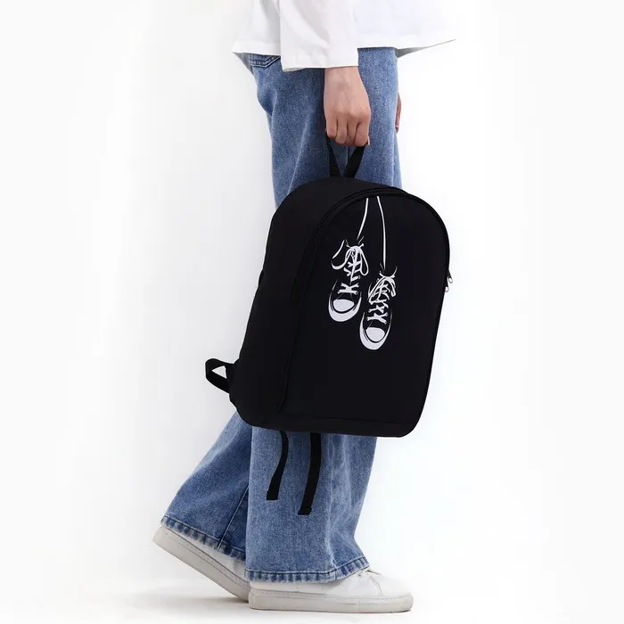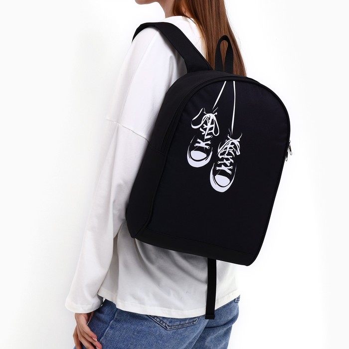 Рюкзак школьный текстильный «Кеды», 38×14×27 см, чёрный — Характеристики