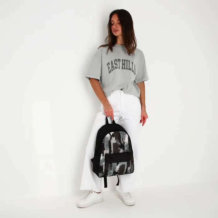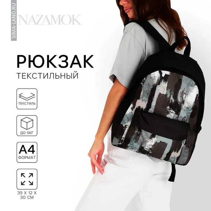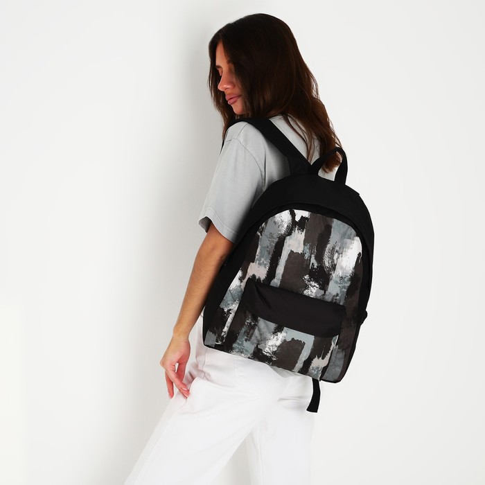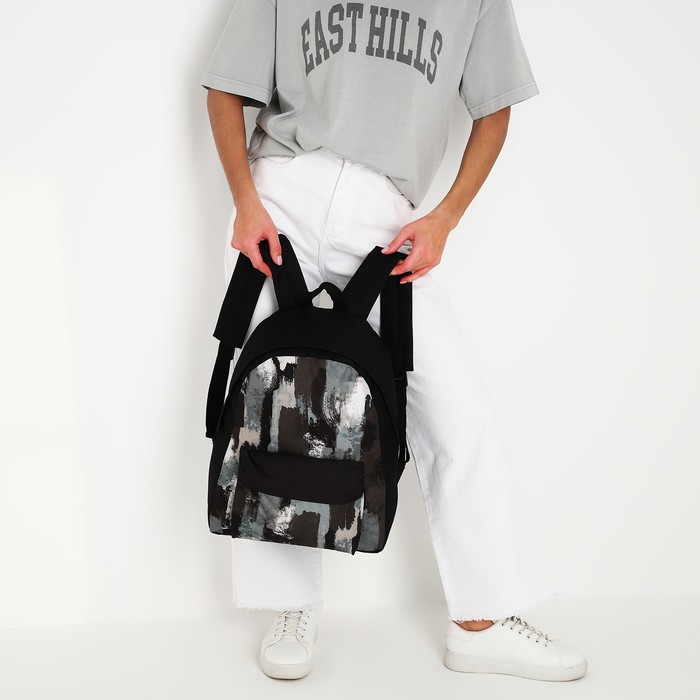 Рюкзак школьный текстильный «Хаки», с карманом, 30×12×40 см, чёрный — Характеристики