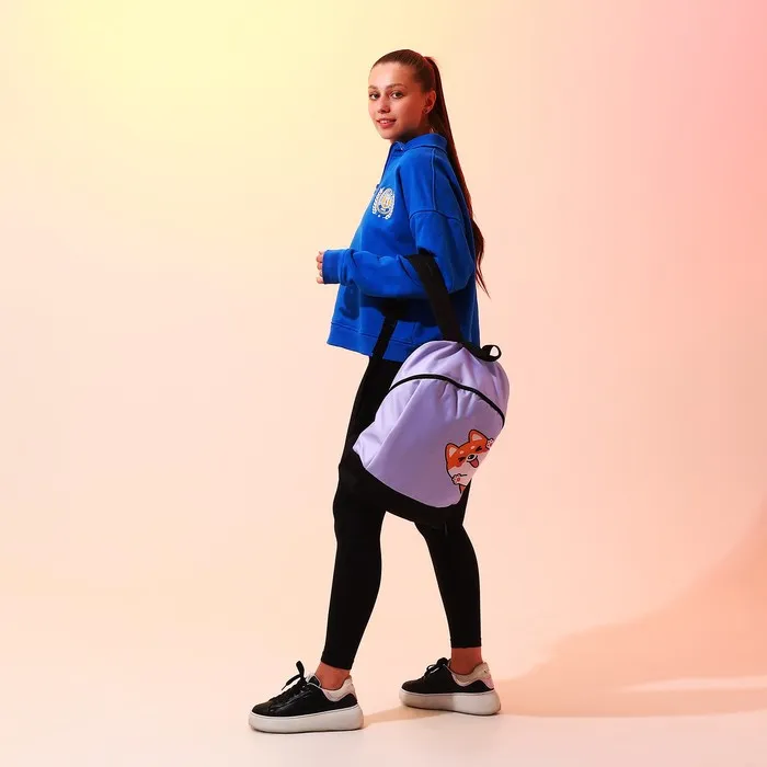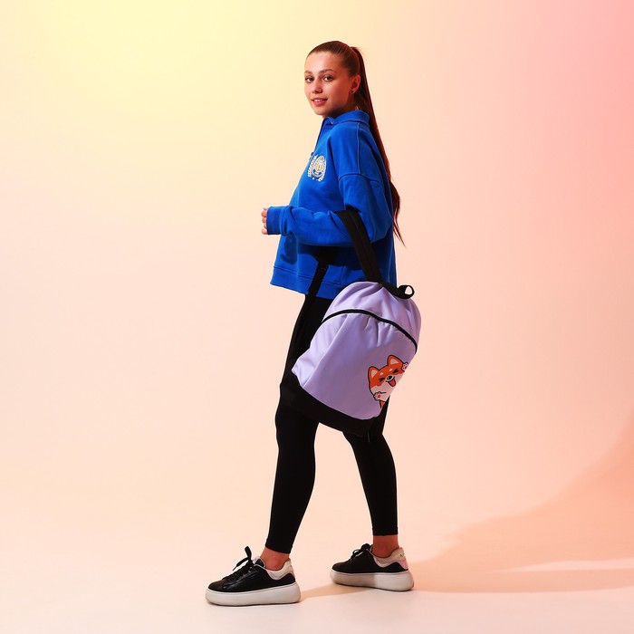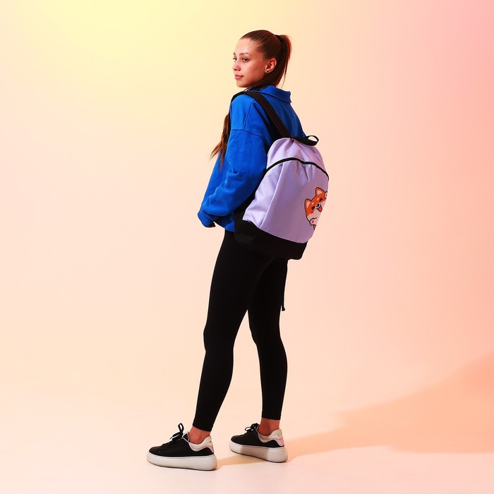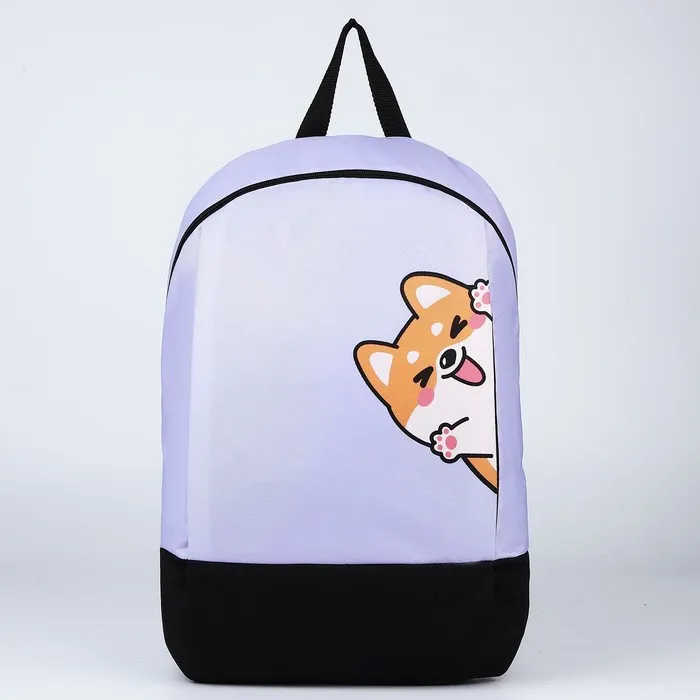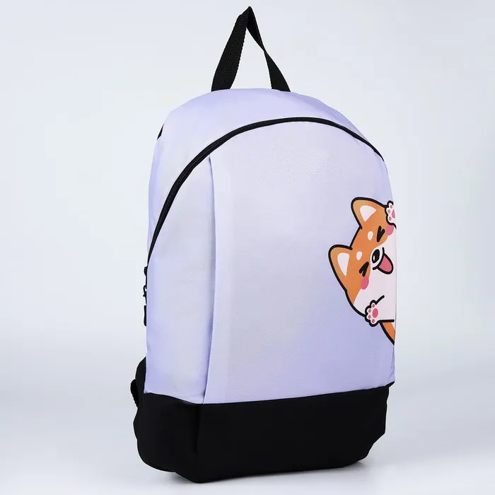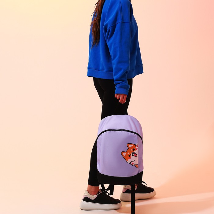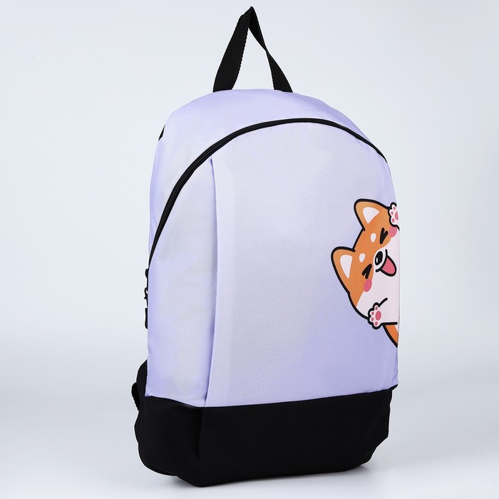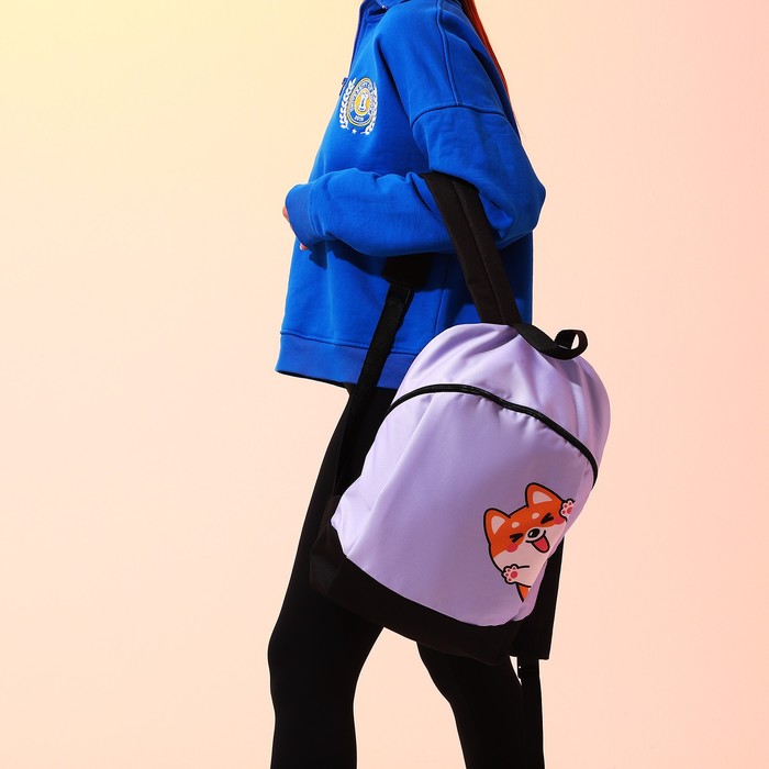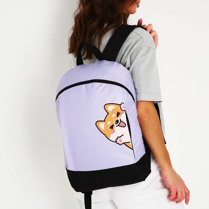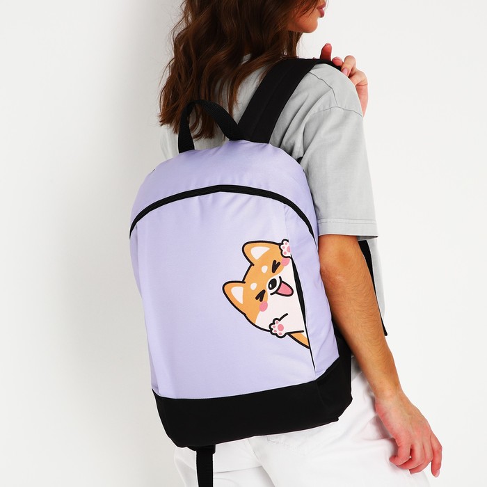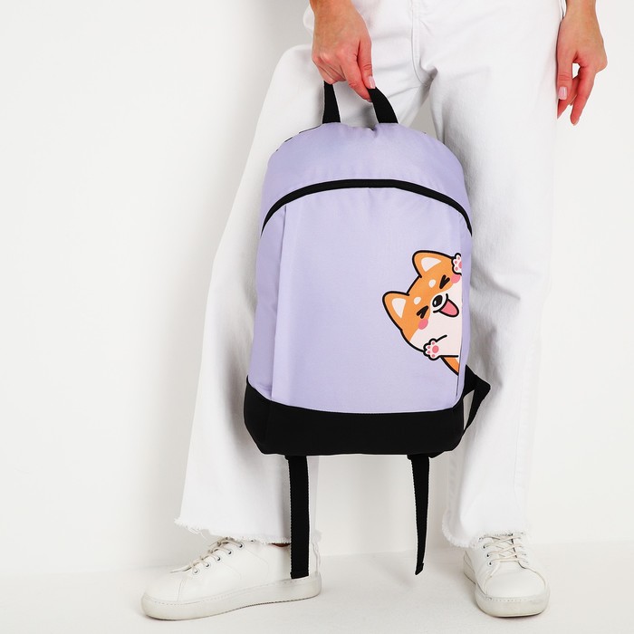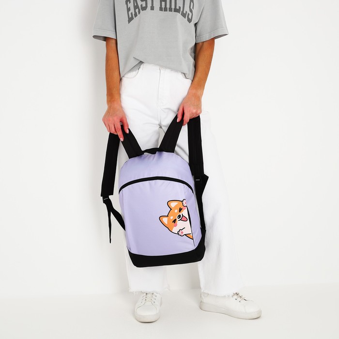 Рюкзак школьный текстильный «Корги», 46×30×10 см, вертикальный карман, фиолетовый — Характеристики