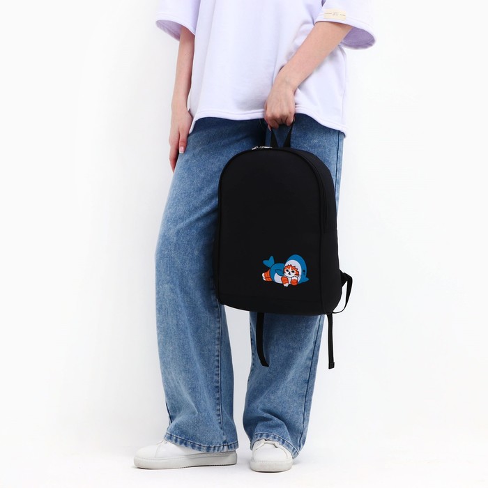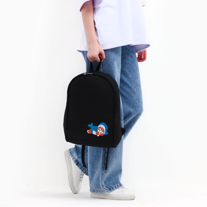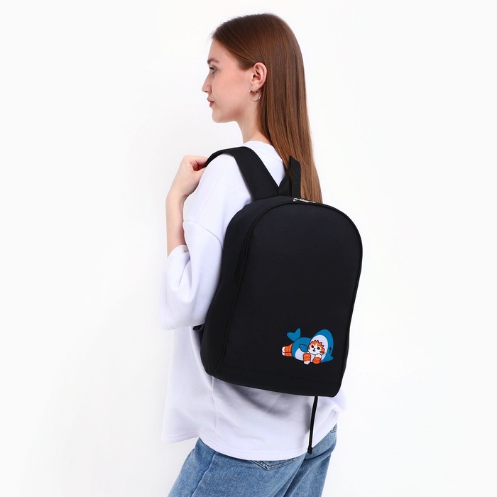Рюкзак школьный текстильный «Котик в костюме», 38×14×27 см, чёрный — Характеристики