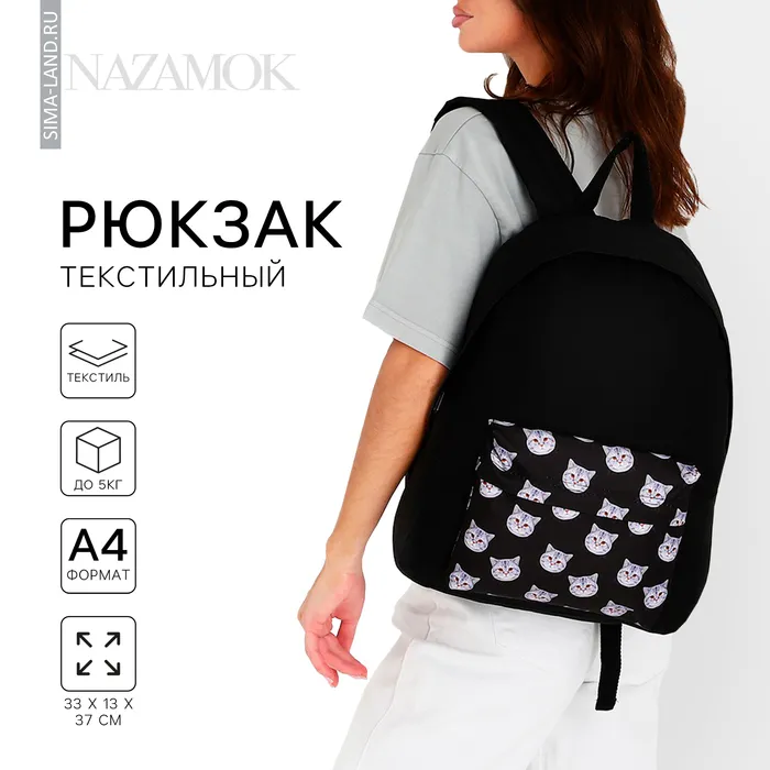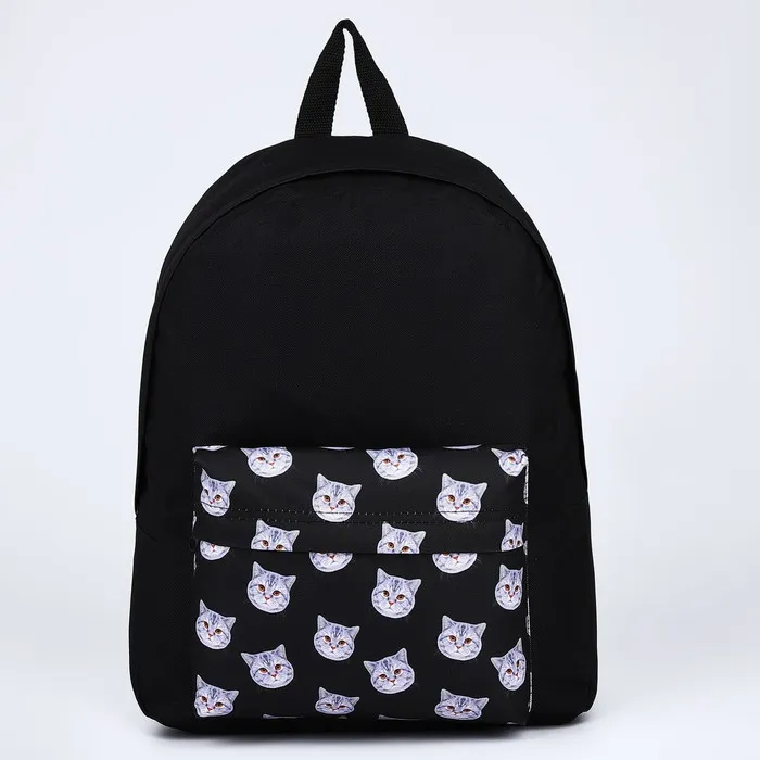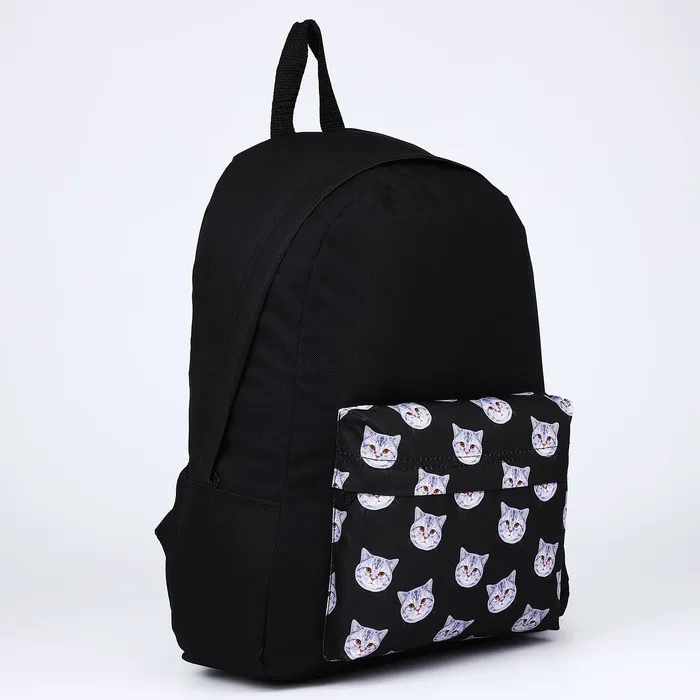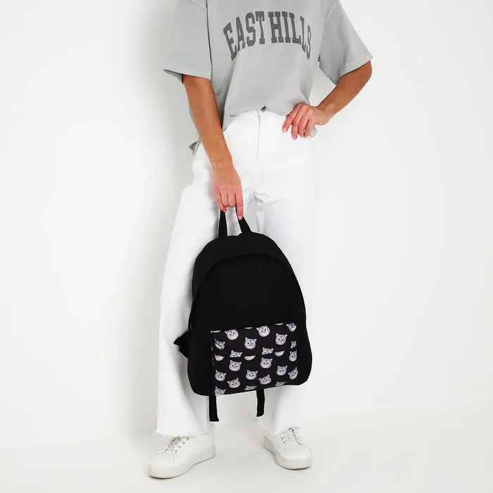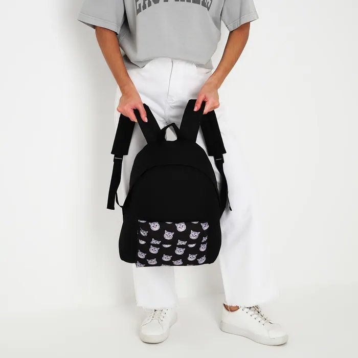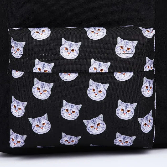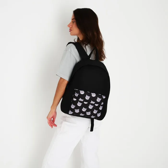 Рюкзак школьный текстильный «Коты», с карманом, чёрный — Характеристики