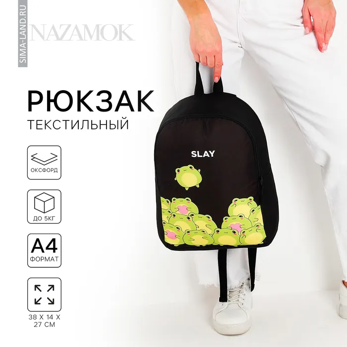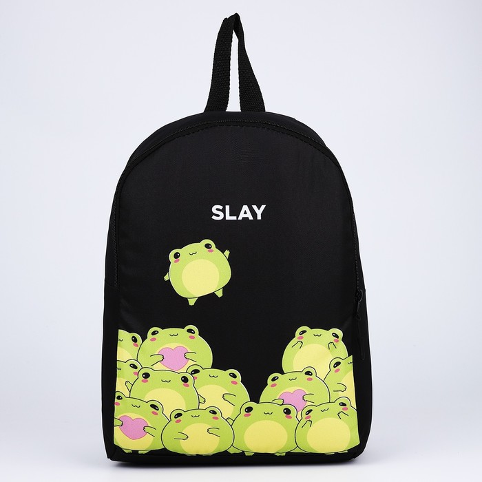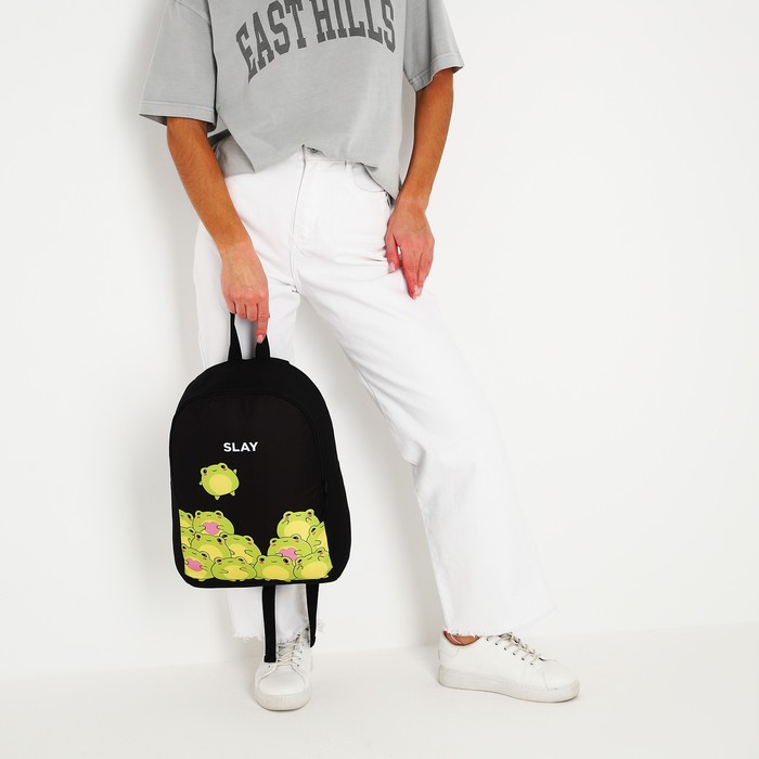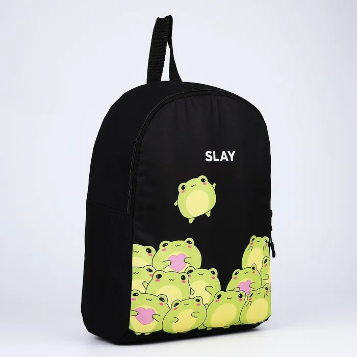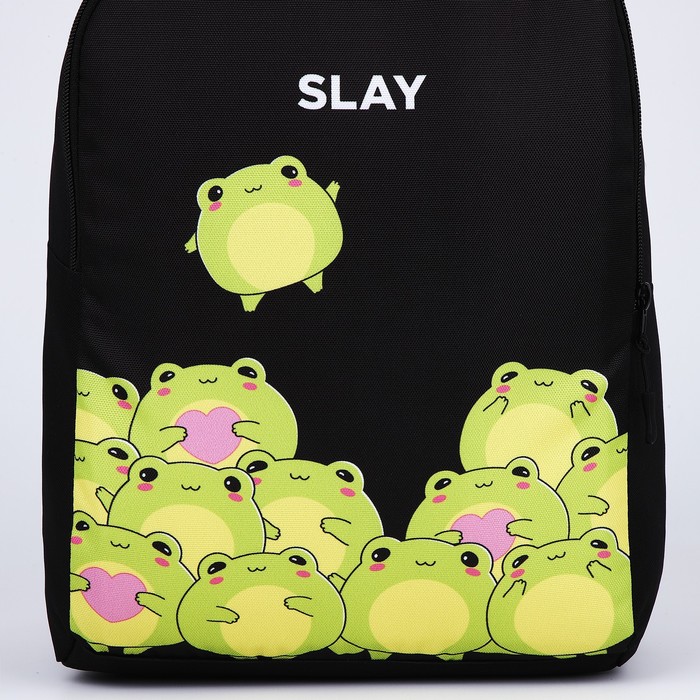Рюкзак школьный текстильный «Лягушки», 38×14×27 см, чёрный — Характеристики