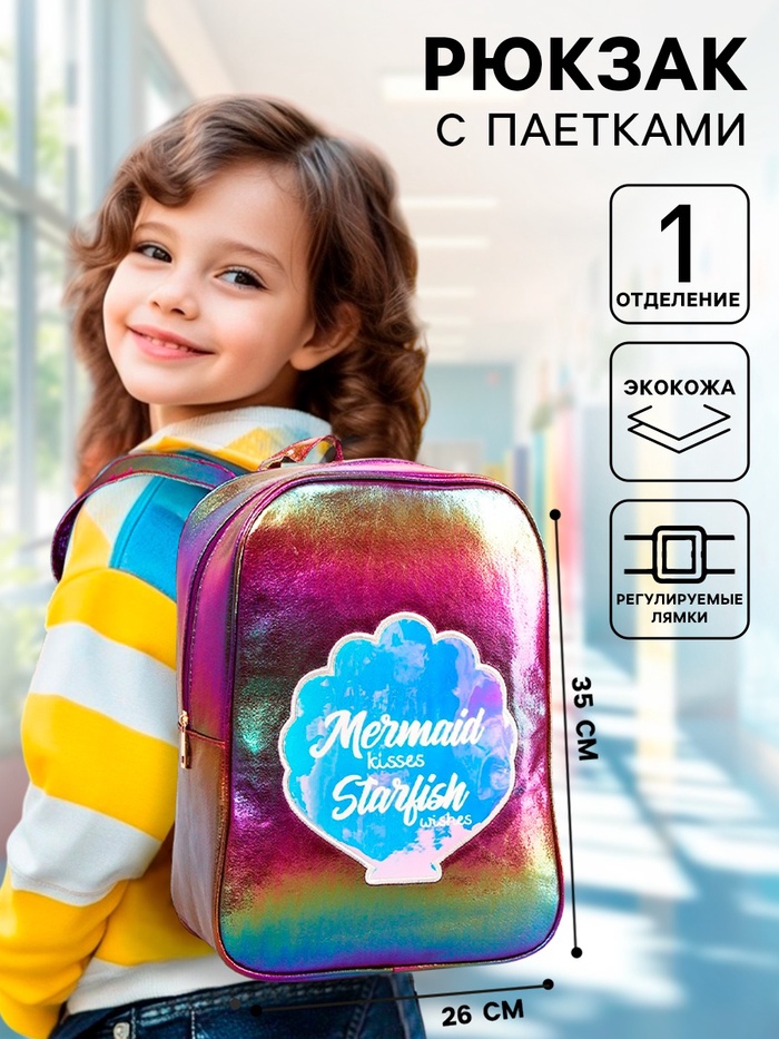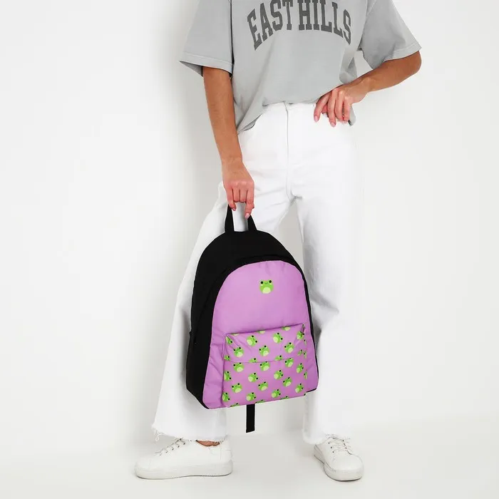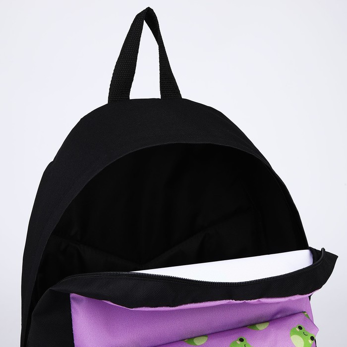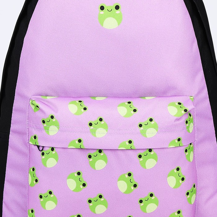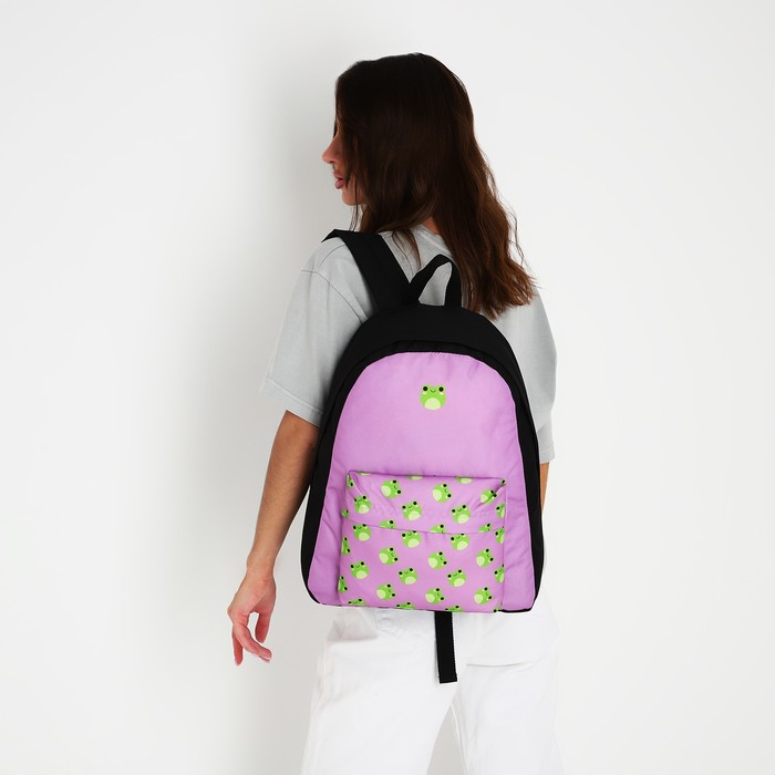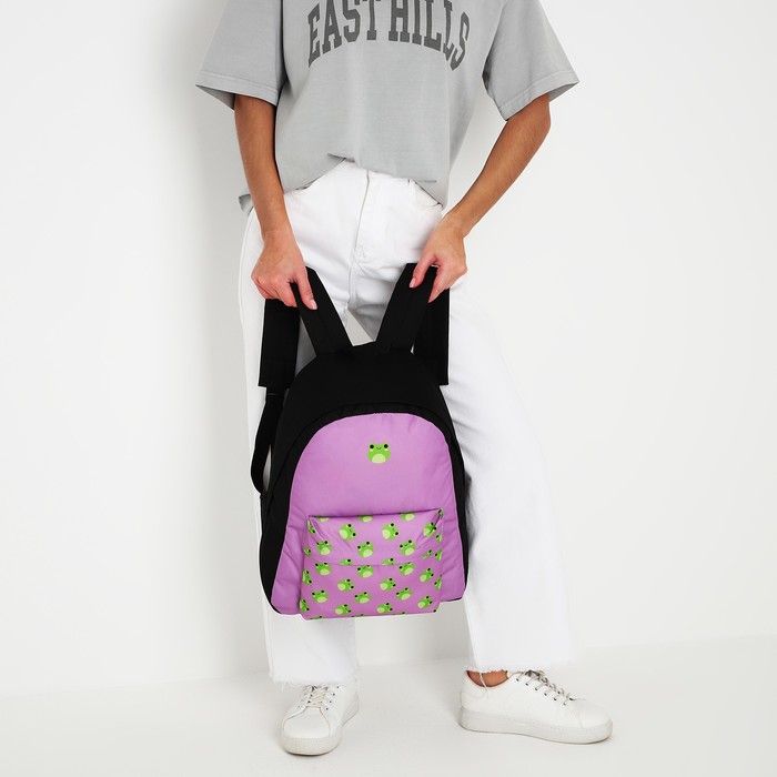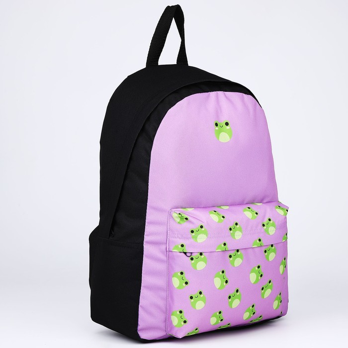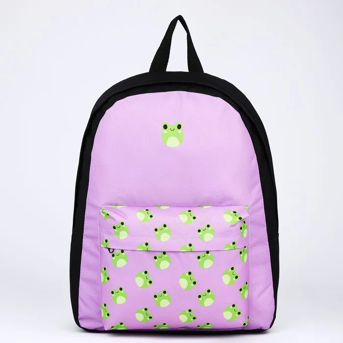 Рюкзак школьный текстильный «Лягушки», с карманом, 29х12х40 фиолетовый — Характеристики