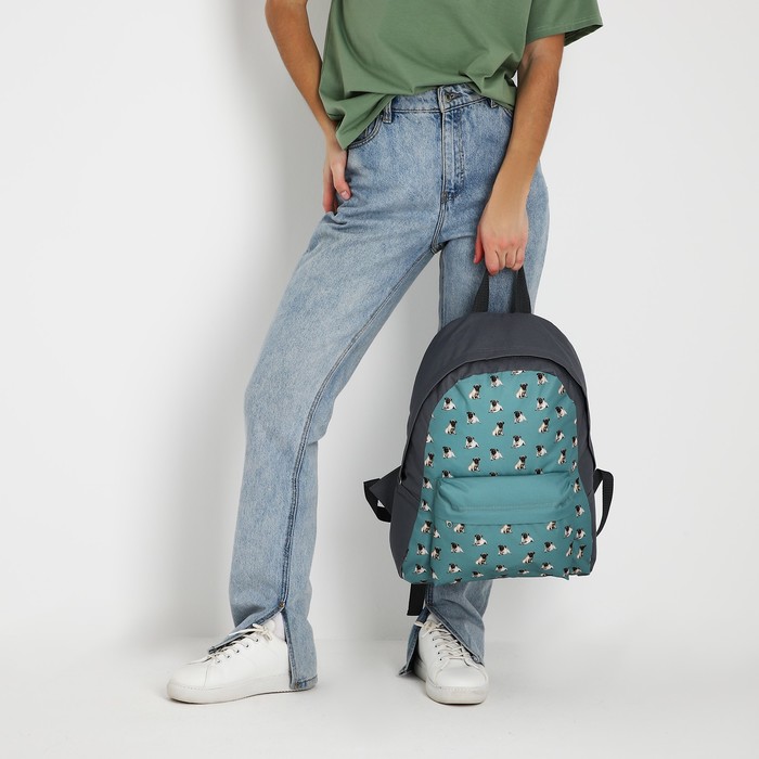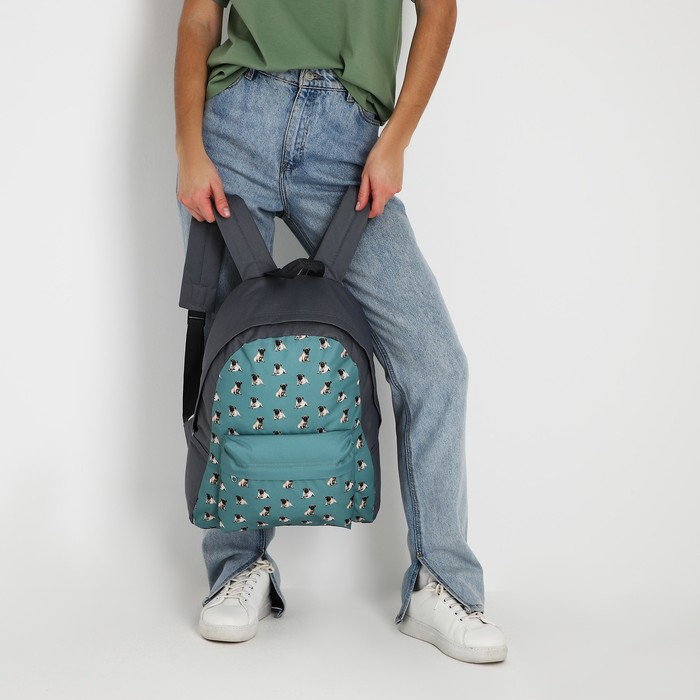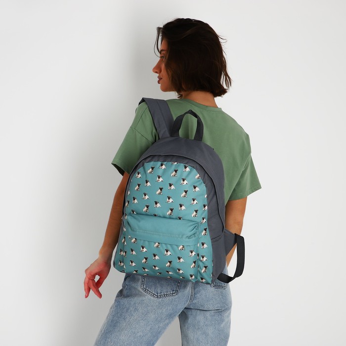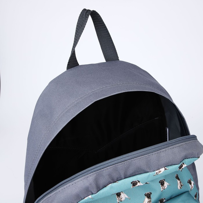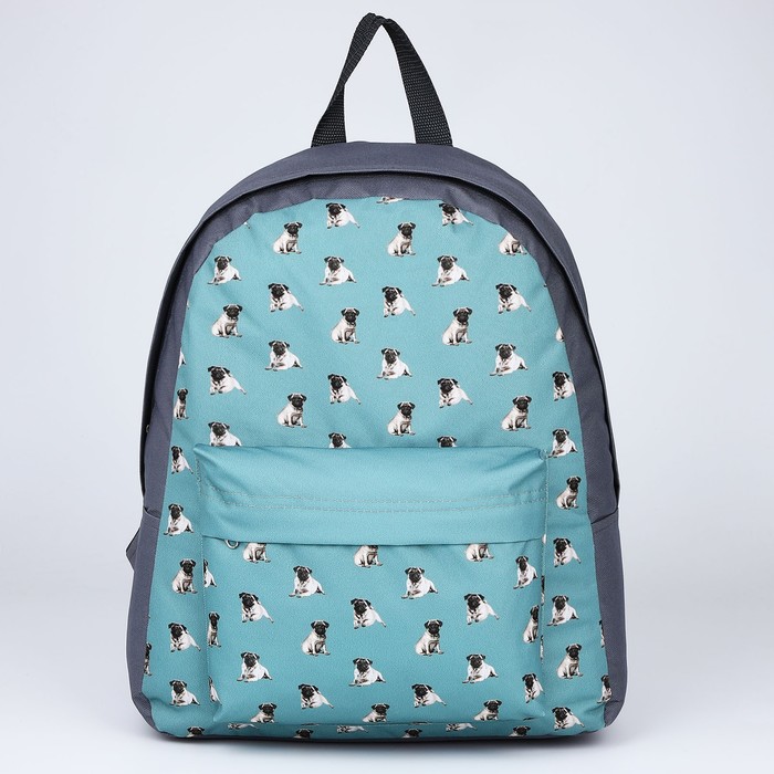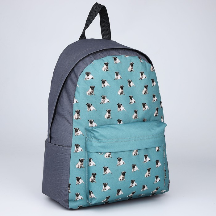 Рюкзак школьный текстильный «Мопсы», с карманом, цвет серый — Характеристики