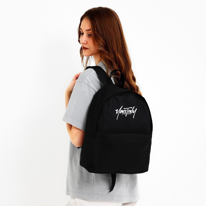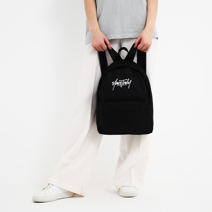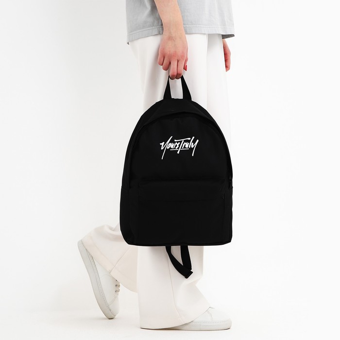 Рюкзак школьный текстильный, с карманом, 27×11×37, чёрный — Характеристики