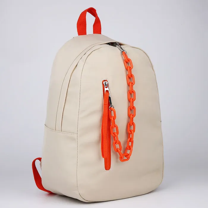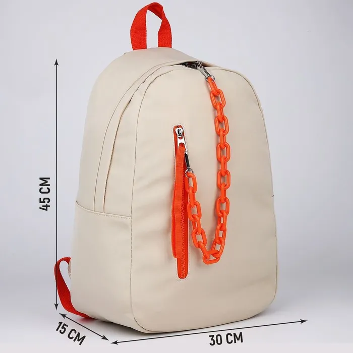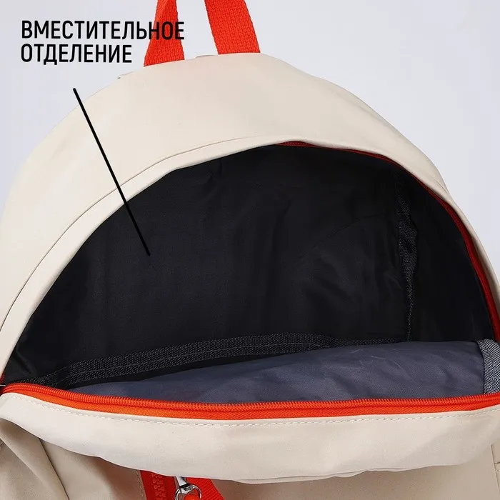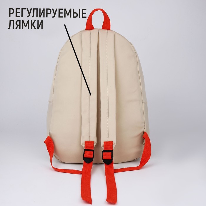 Рюкзак школьный текстильный с карманом, бежевый, 45×30×15 см — Характеристики