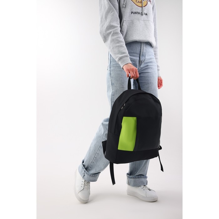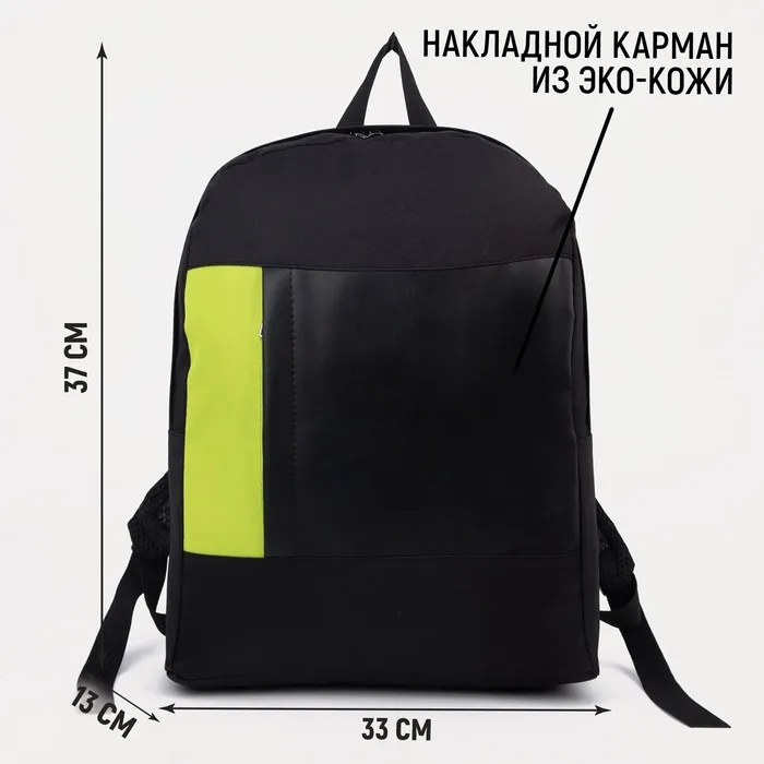 Рюкзак школьный текстильный с карманом иск.кожа, 37 х 33 х 13 см , чёрный — Характеристики
