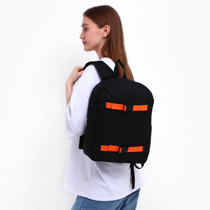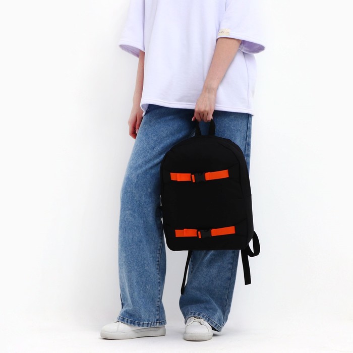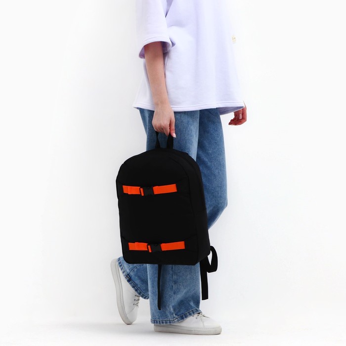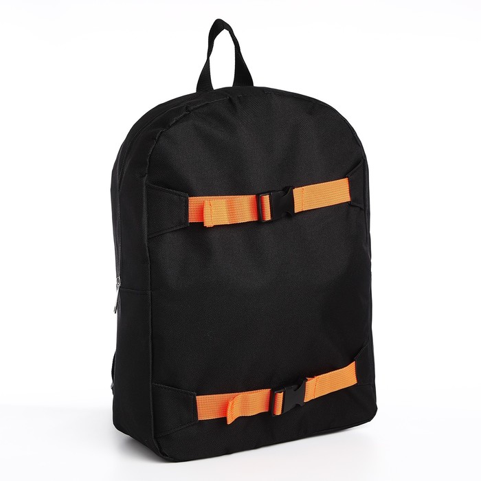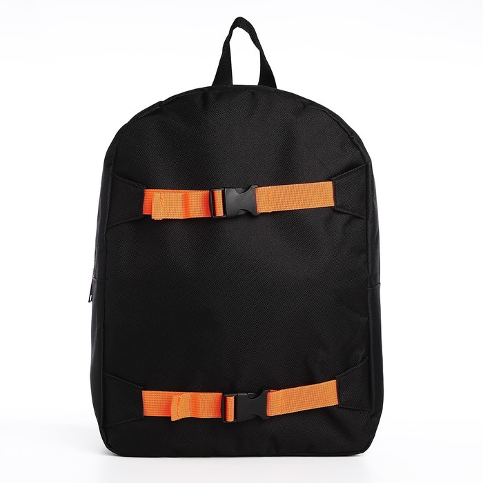 Рюкзак школьный текстильный с креплением для скейта, 38×29×11 см, 38 х см, чёрный, отдел на молнии — Характеристики