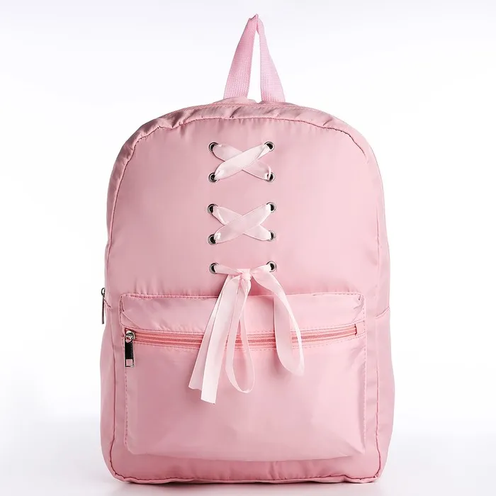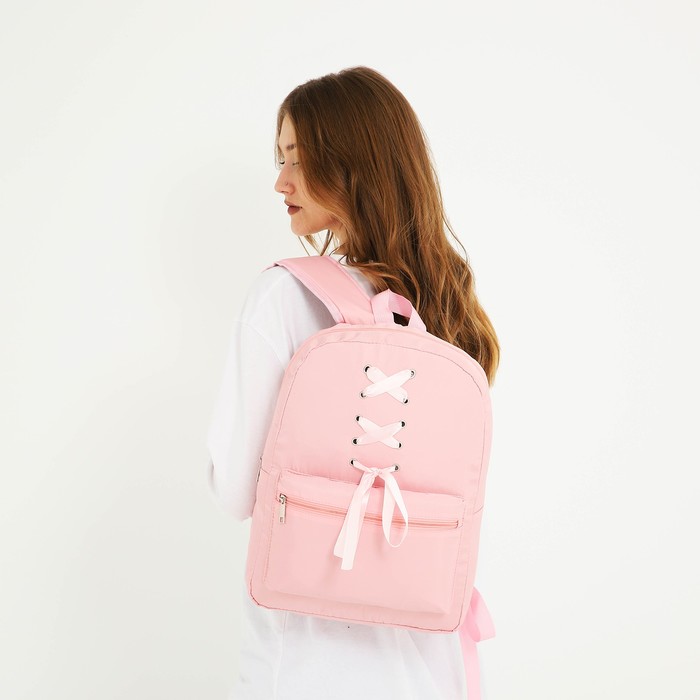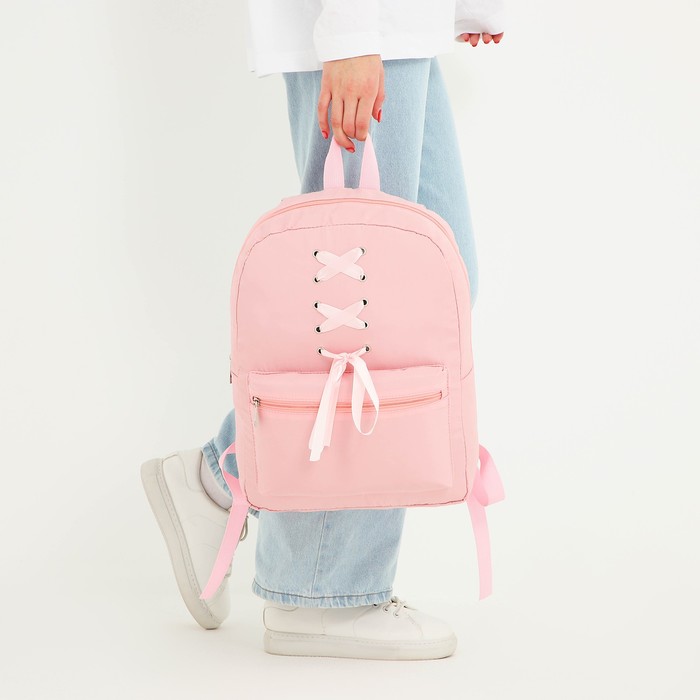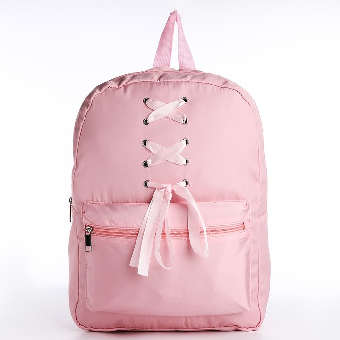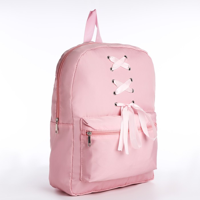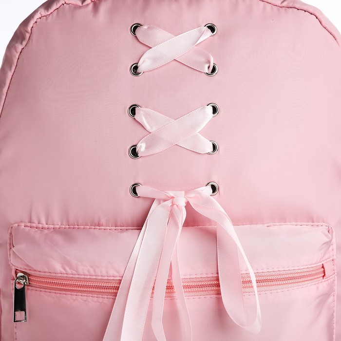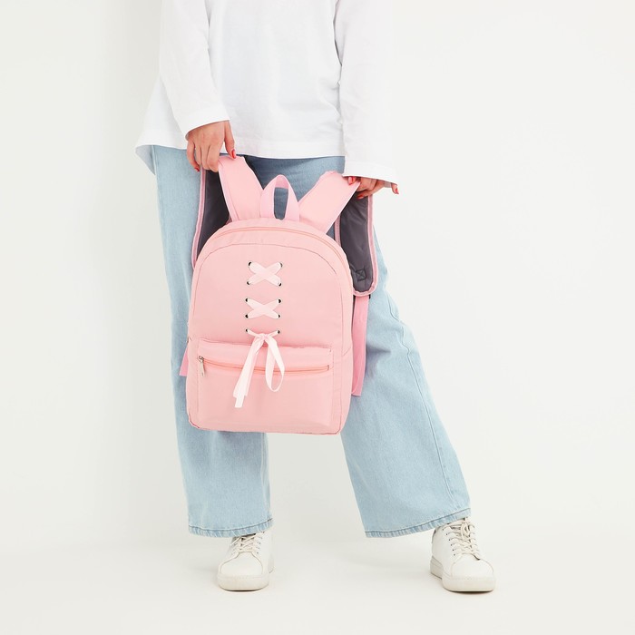 Рюкзак школьный текстильный с лентами, 38×29×11 см, розовый, отдел на молнии — Характеристики
