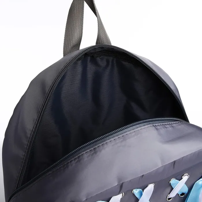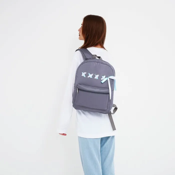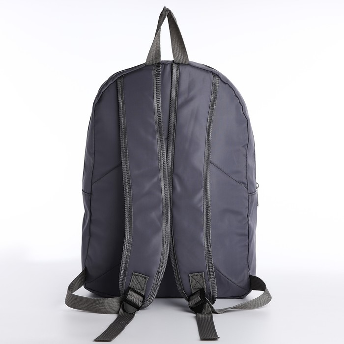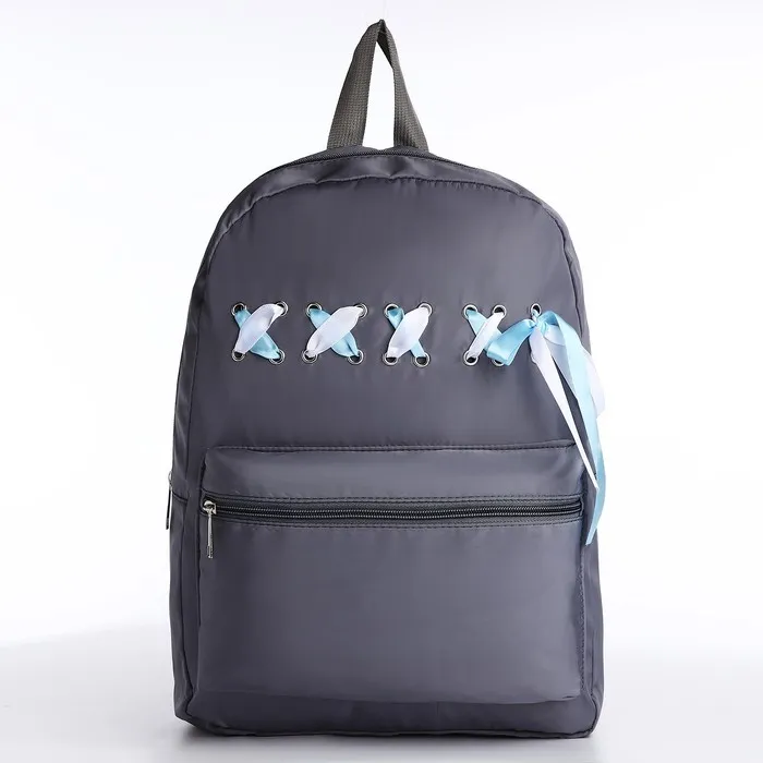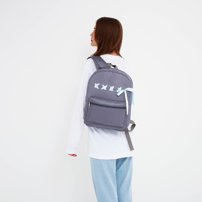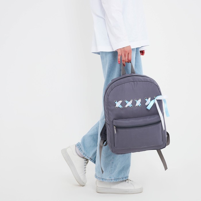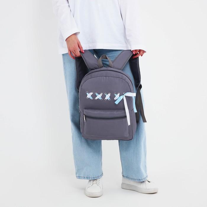 Рюкзак школьный текстильный с лентами, 38×29×11 см, серый, отдел на молнии — Характеристики