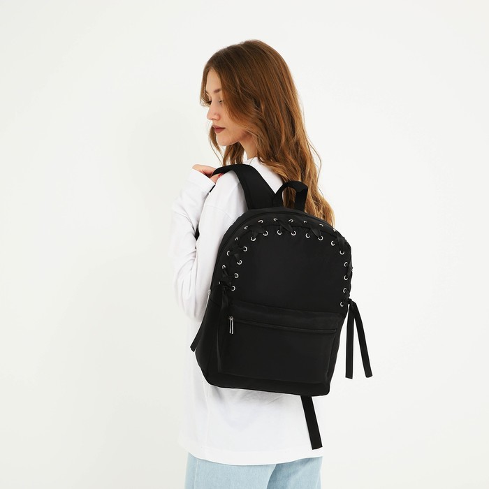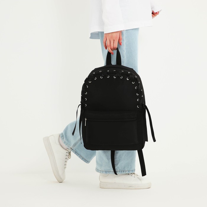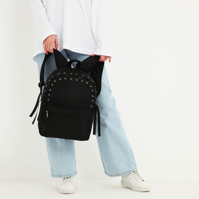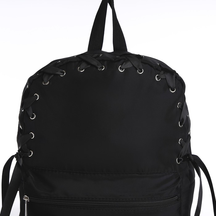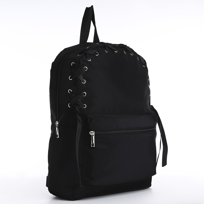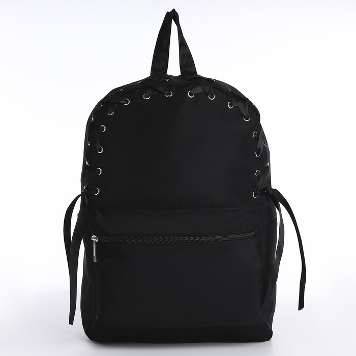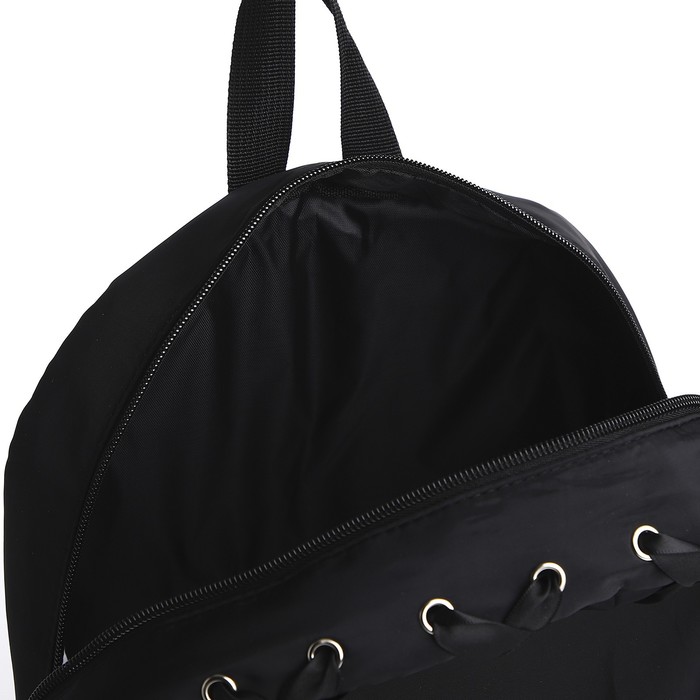 Рюкзак школьный текстильный с лентой, 38×29×11 см, чёрный, отдел на молнии — Характеристики