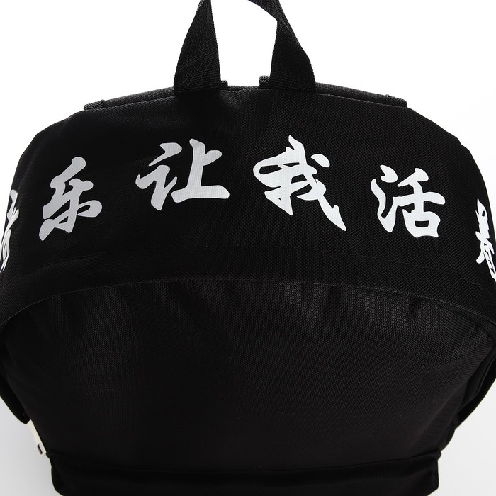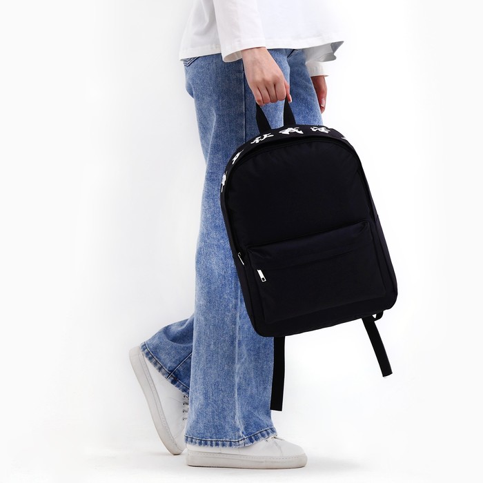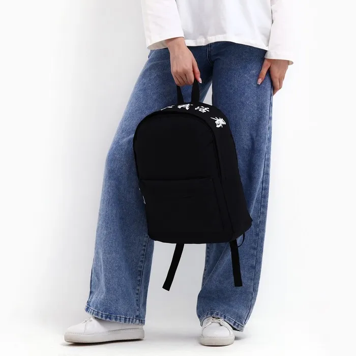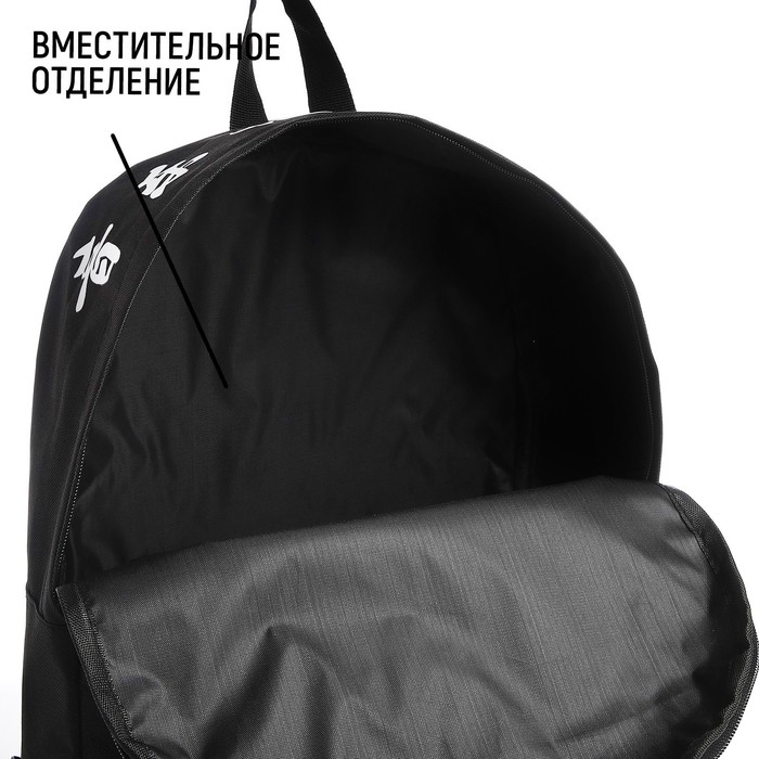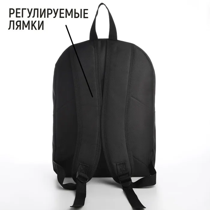Рюкзак школьный текстильный с печатью на верхней части, 38×29×11 см, чёрный — Характеристики