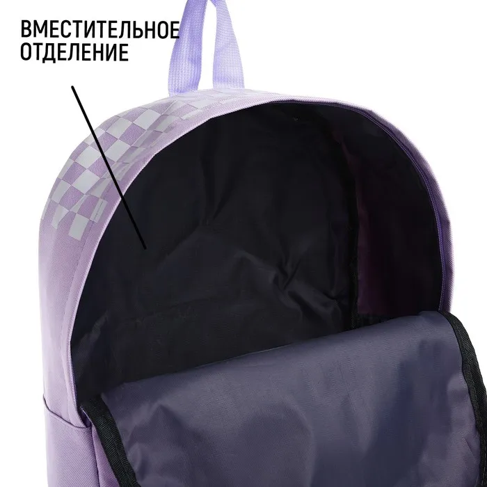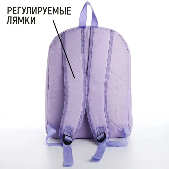 Рюкзак школьный текстильный с печатью на верхней части, 38×29×11 см, сиреневый — Характеристики