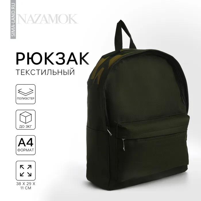 Рюкзак школьный текстильный с печатью на верхней части, 38×29×11 см, зелёный — Характеристики
