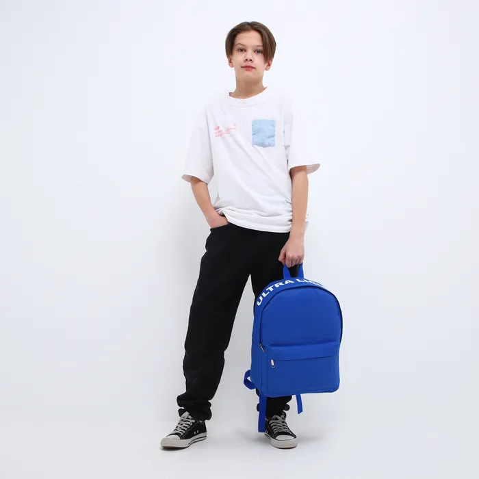 Рюкзак школьный текстильный с печатью на верхней части LIGHT, 38×29×11 см, синий — Характеристики