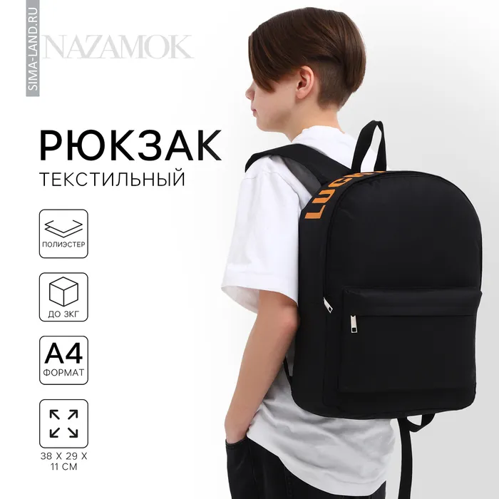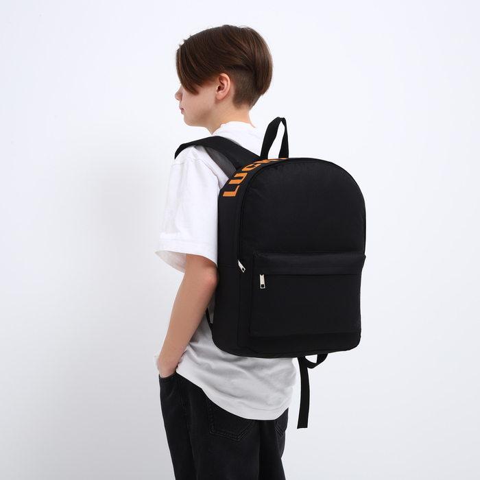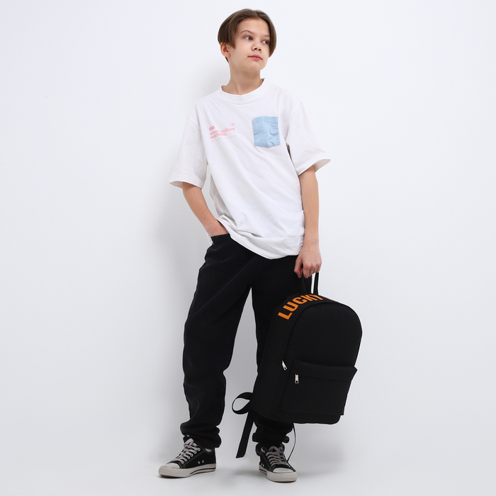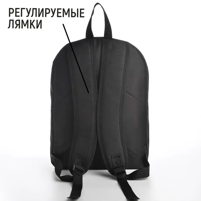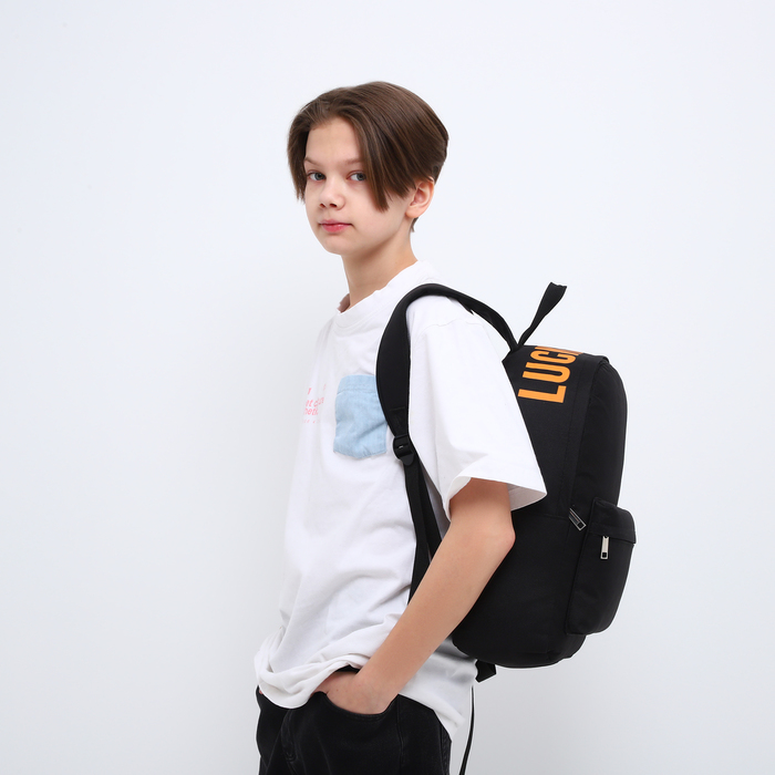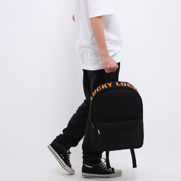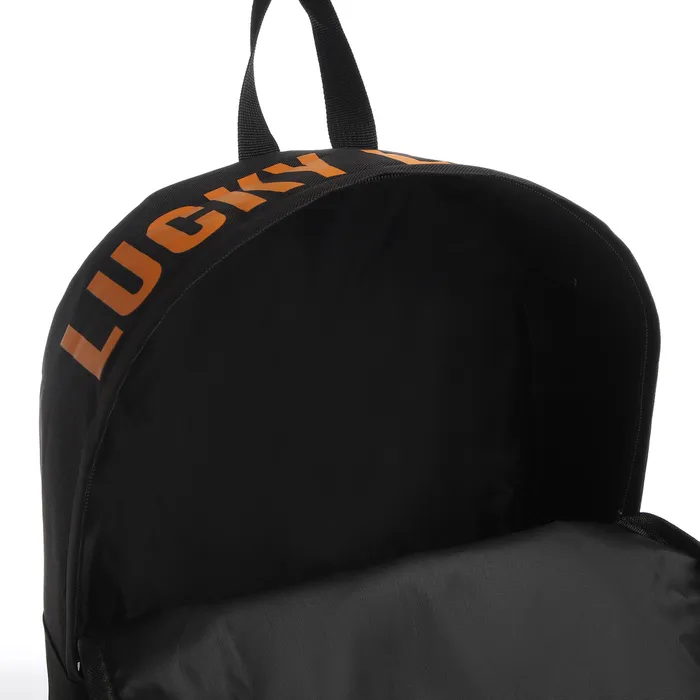Рюкзак школьный текстильный с печатью на верхней части LUCKY, 38×29×11 см, чёрный — Характеристики