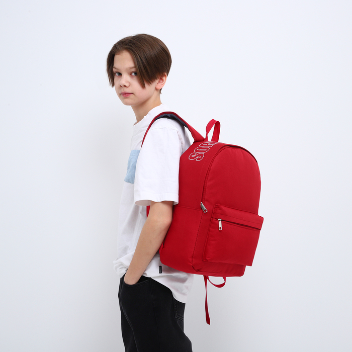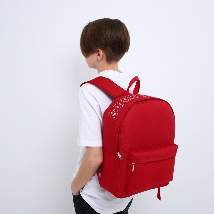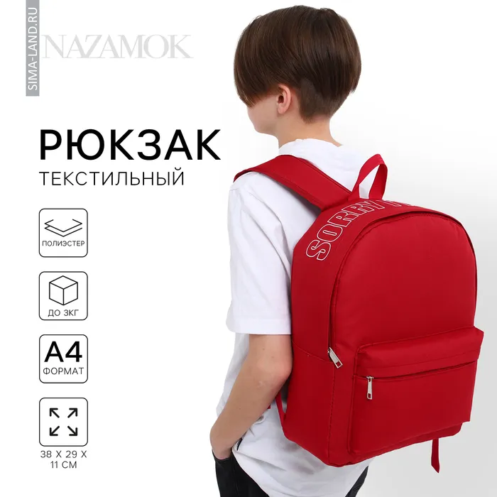 Рюкзак школьный текстильный с печатью на верхней части SORRY, 38×29×11 см, бордовый — Характеристики