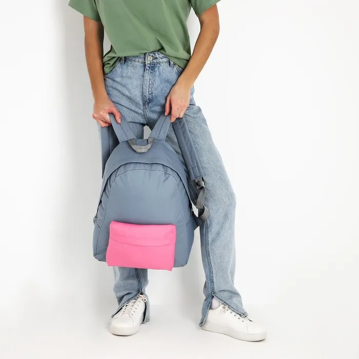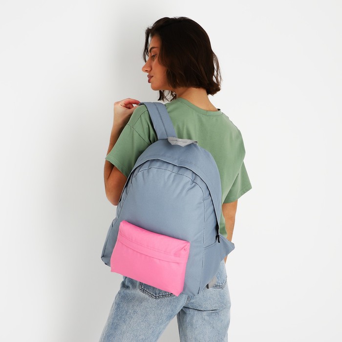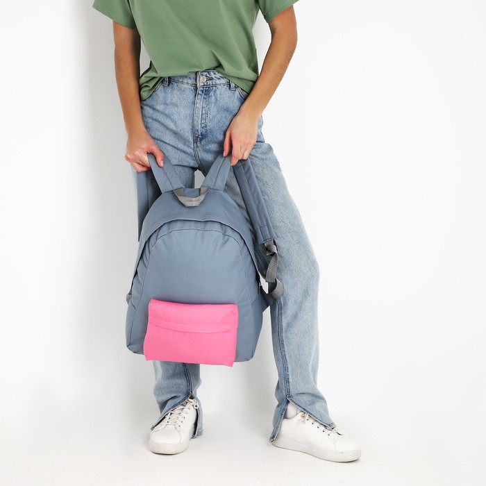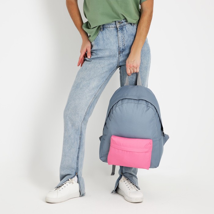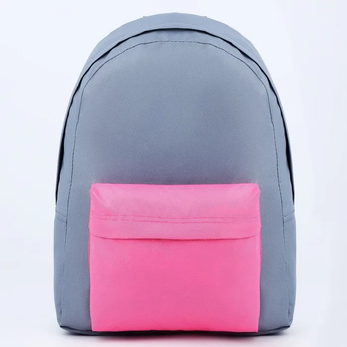 Рюкзак школьный текстильный с цветным карманом, 30×39×12 см, серый — Характеристики