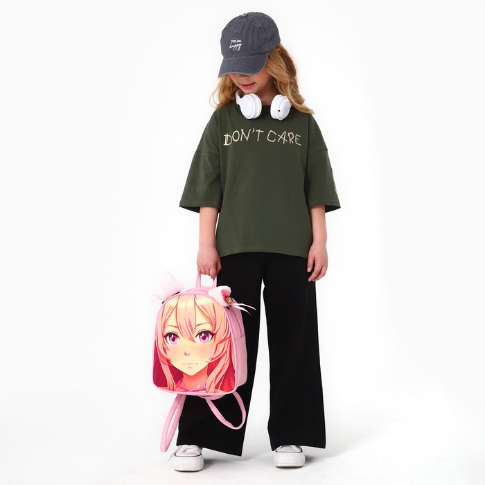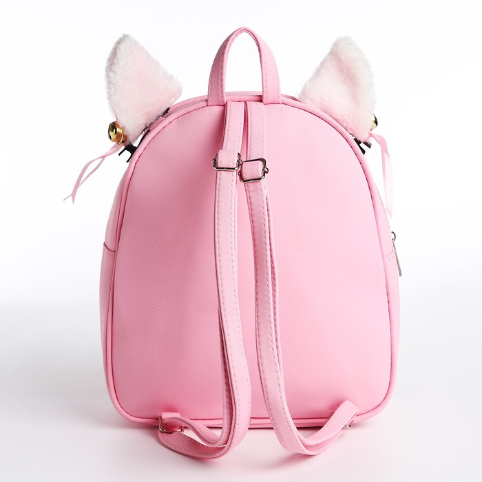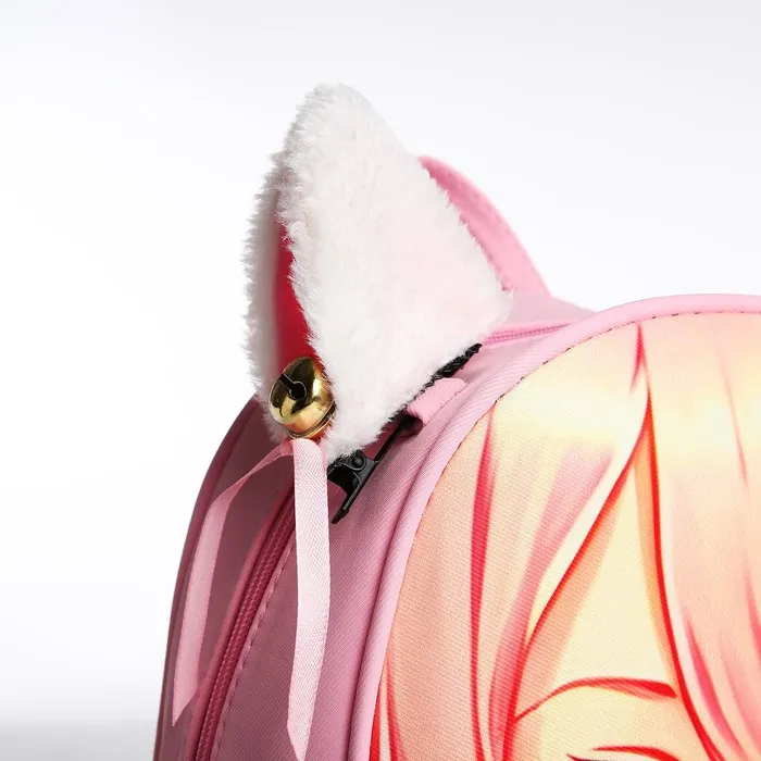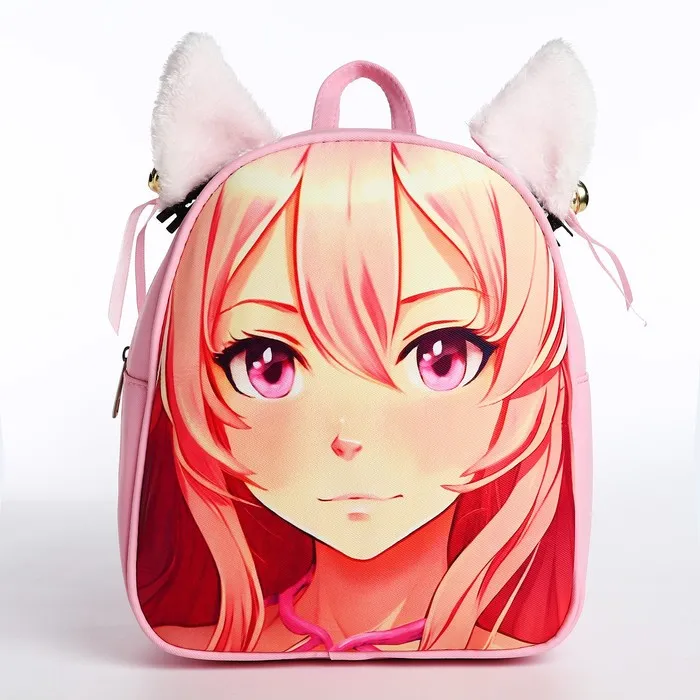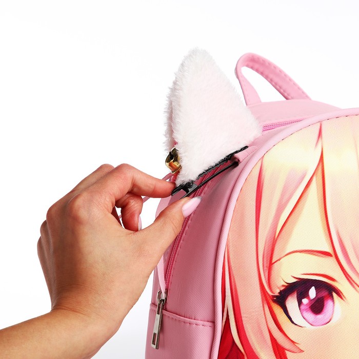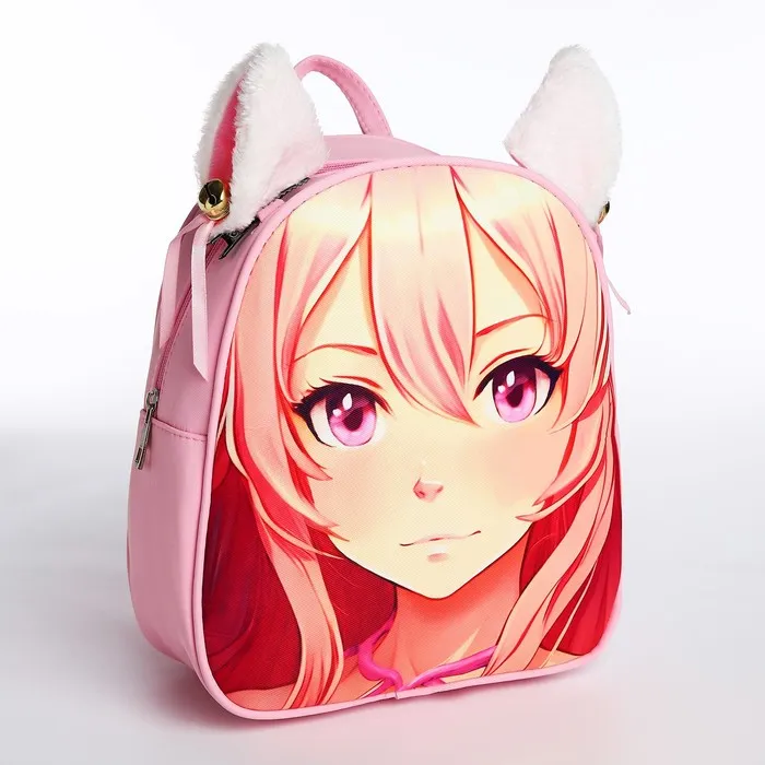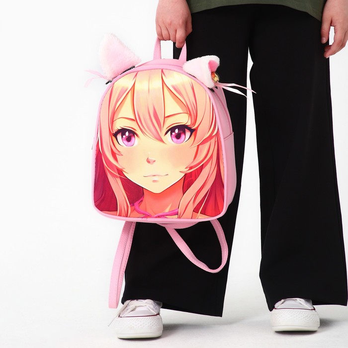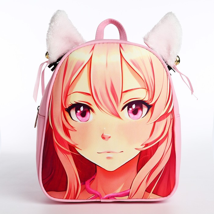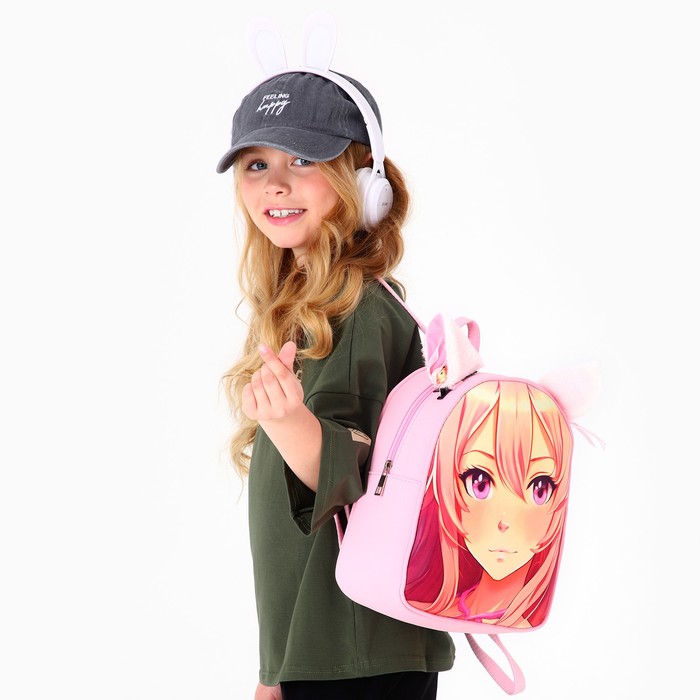 Рюкзак школьный текстильный с ушками на заколках «Аниме», 27×23 см, розовый — Характеристики