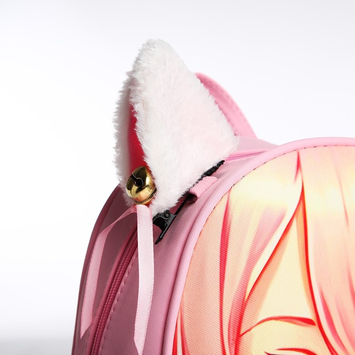 Рюкзак школьный текстильный с ушками на заколках «Аниме», 27×23 см, розовый