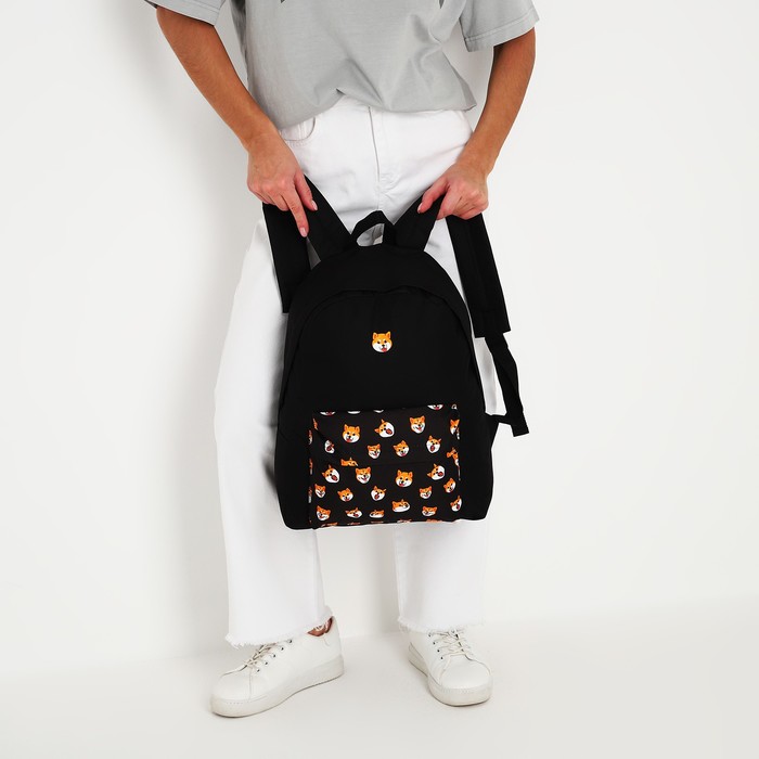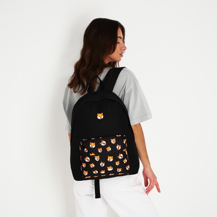 Рюкзак школьный текстильный «Сиба-ину», с карманом, чёрный — Характеристики