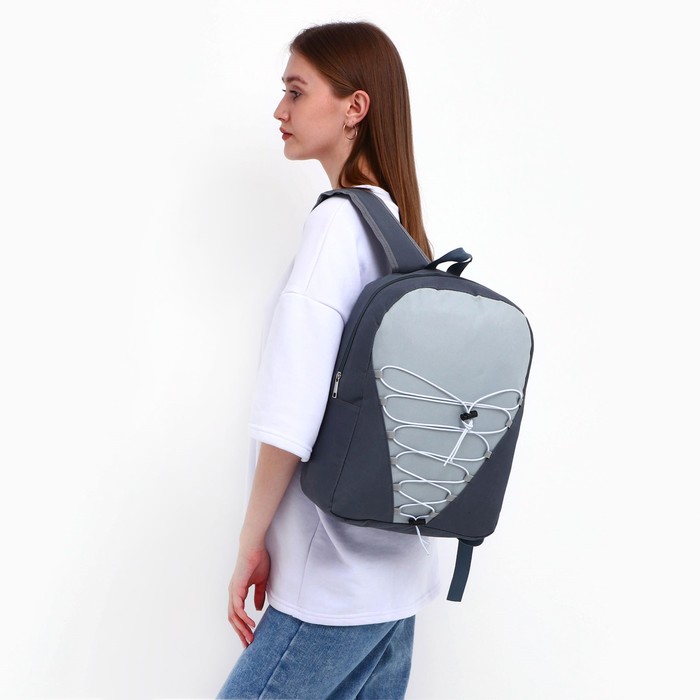 Рюкзак школьный текстильный со шнуровкой, 38х29х11 см, серый — Характеристики