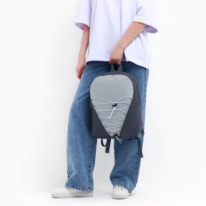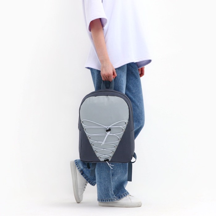 Рюкзак школьный текстильный со шнуровкой, 38х29х11 см, серый