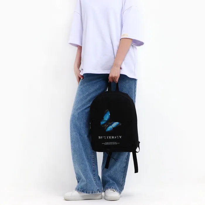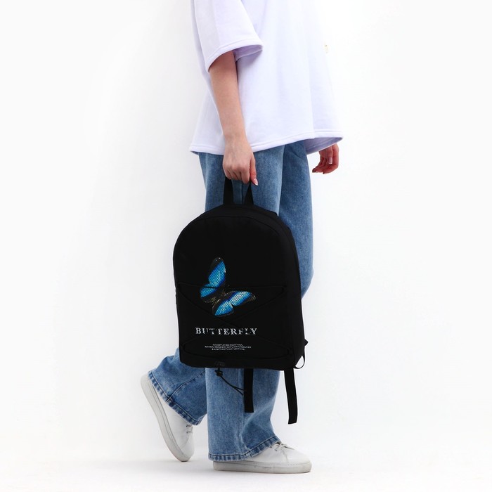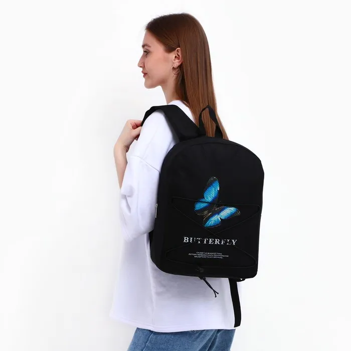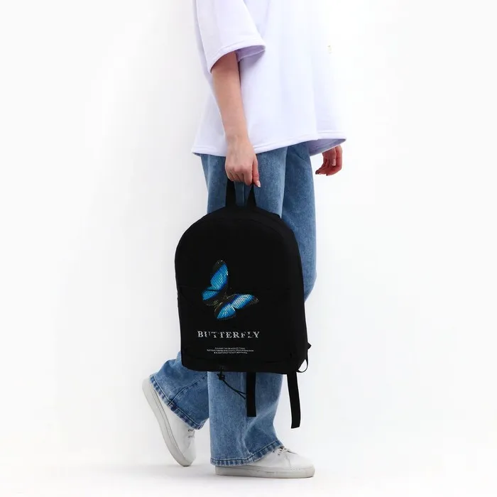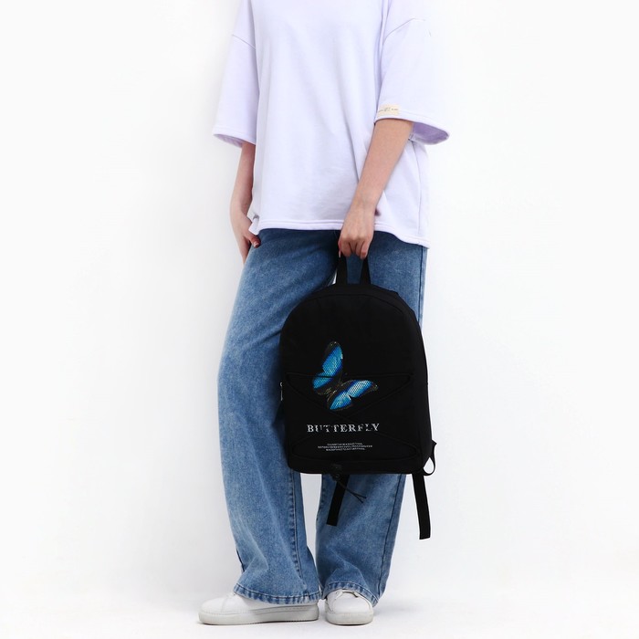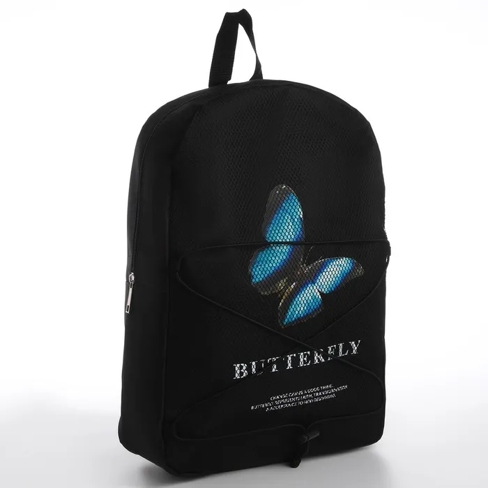Рюкзак школьный текстильный со шнуровкой BUTTERFLY, 38×29×11 см, чёрный — Характеристики