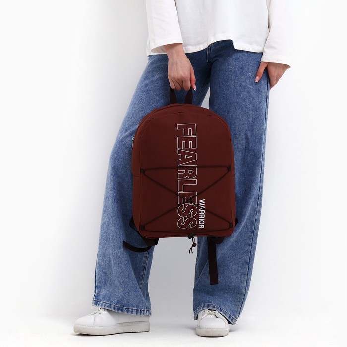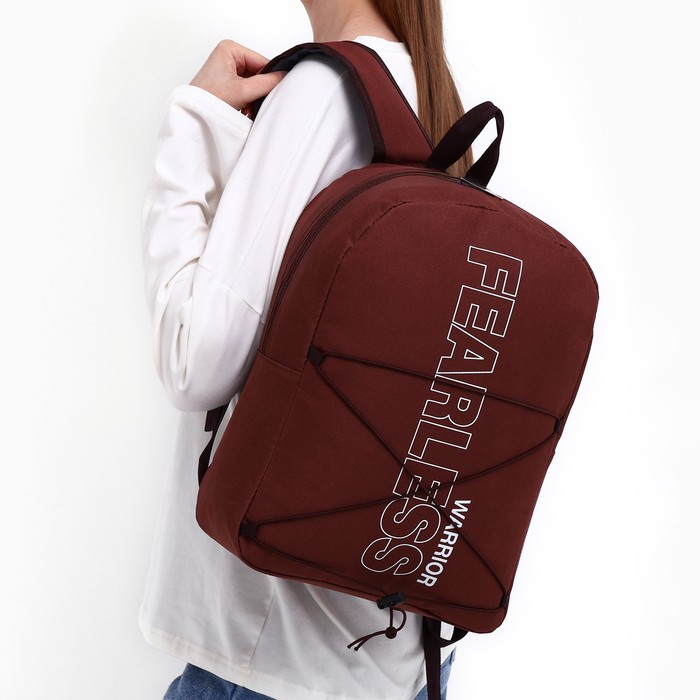 Рюкзак школьный текстильный со шнуровкой FEARLESS, 38х29х11 см, коричневый — Характеристики