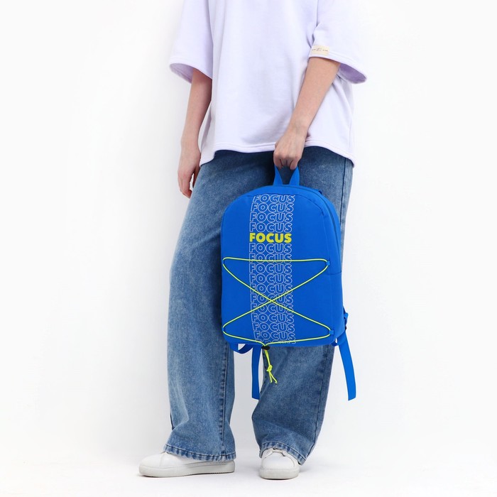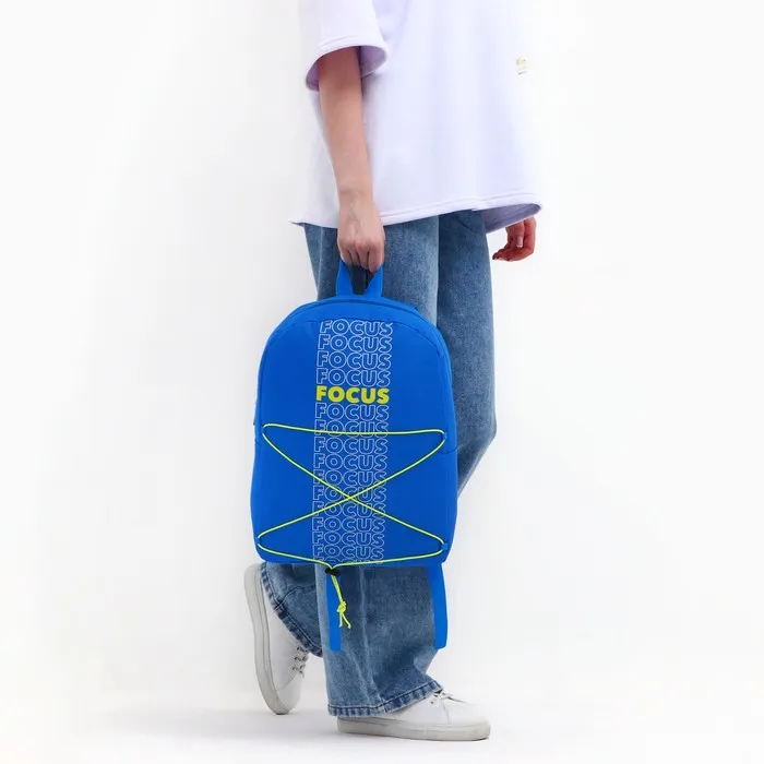 Рюкзак школьный текстильный со шнуровкой FOCUS, 38×29×11 см, синий — Характеристики