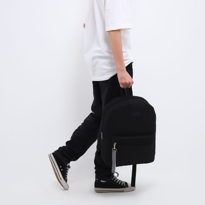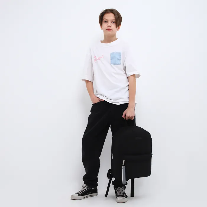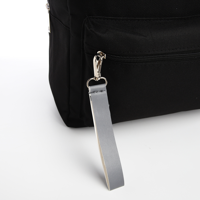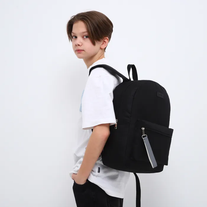Рюкзак школьный текстильный со светоотражающей стропой, 38×29×11 см, чёрный — Характеристики