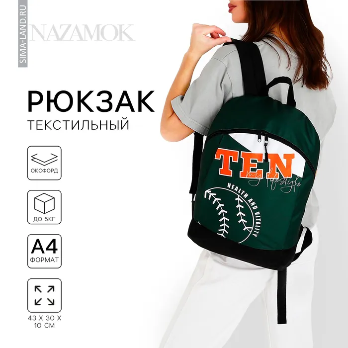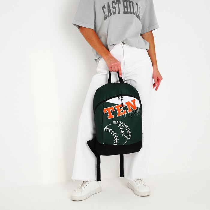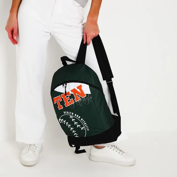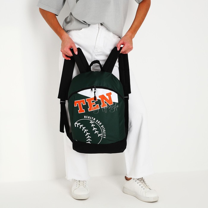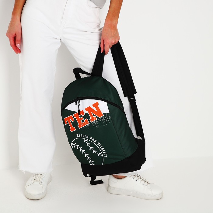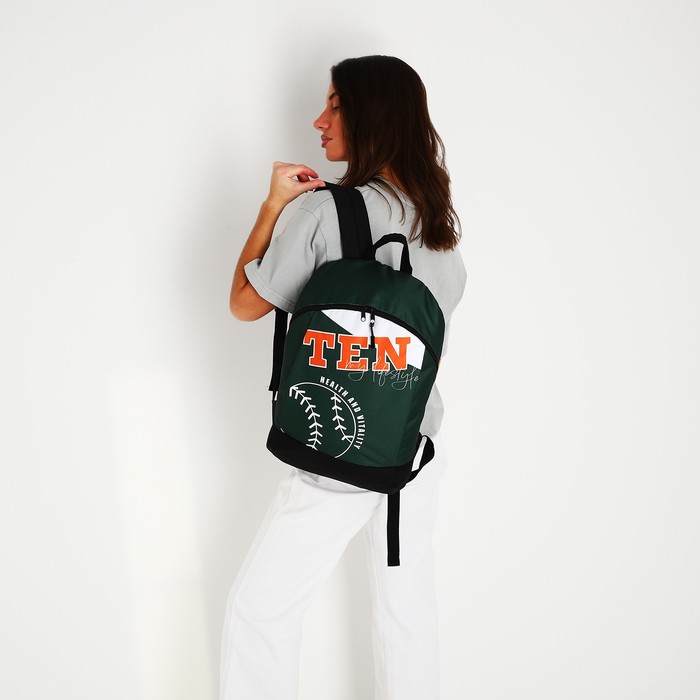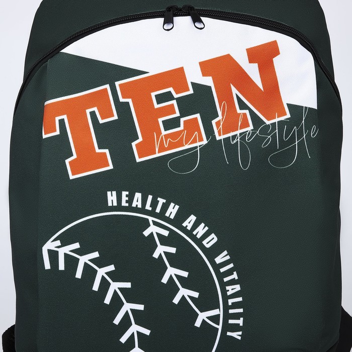 Рюкзак школьный текстильный Tennis, 46×30×10 см, вертикальный карман, зелёный — Характеристики