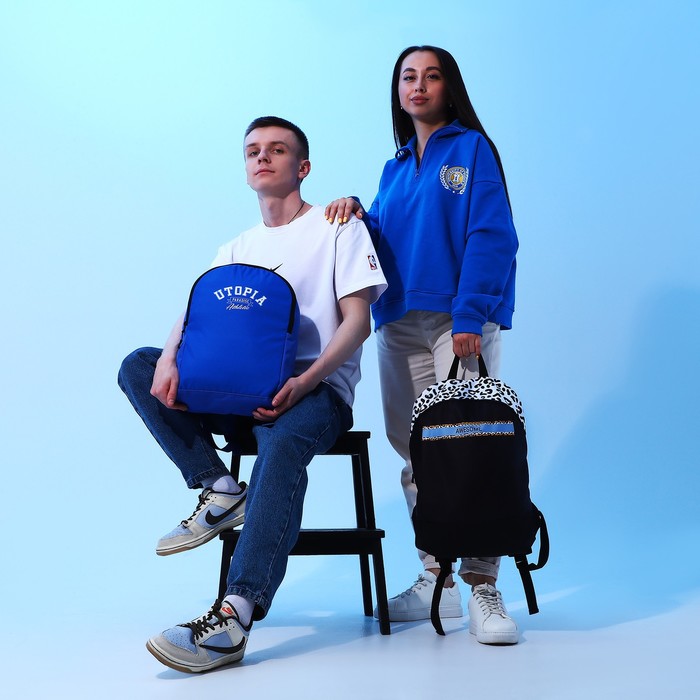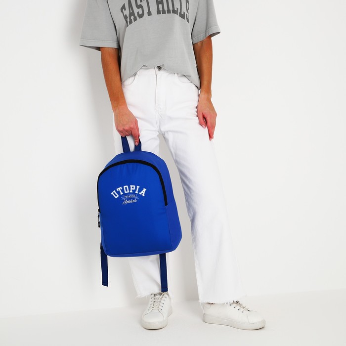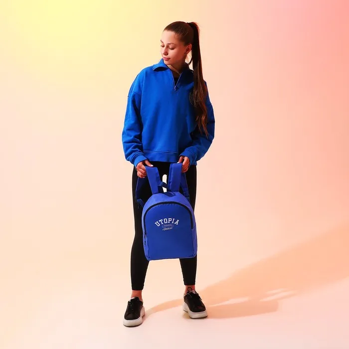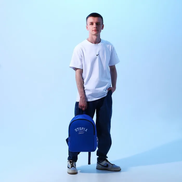 Рюкзак школьный текстильный Utopia, 38×14×27 см, синий — Характеристики