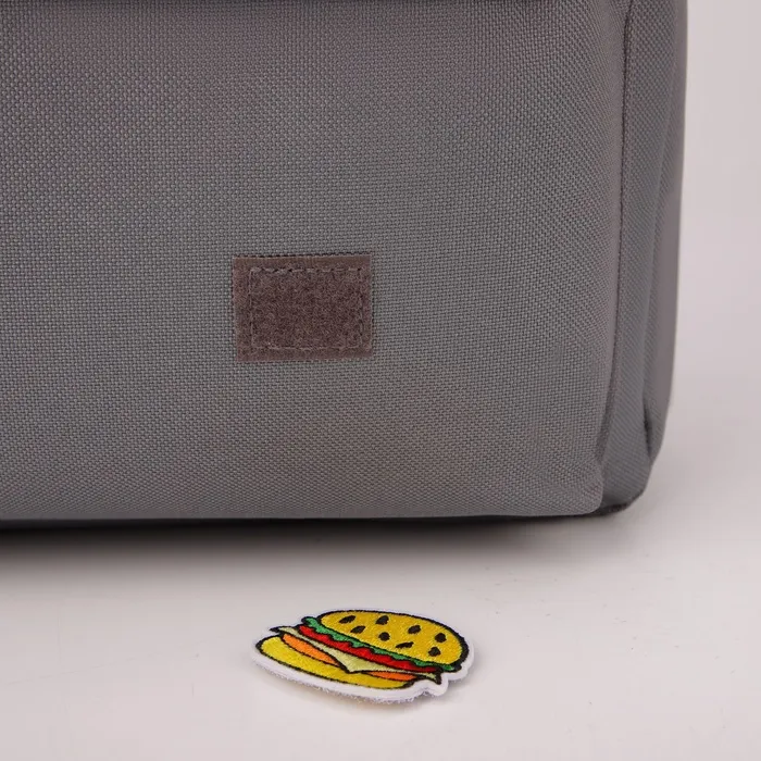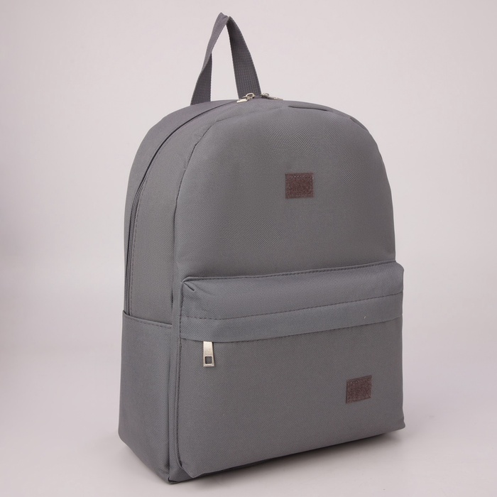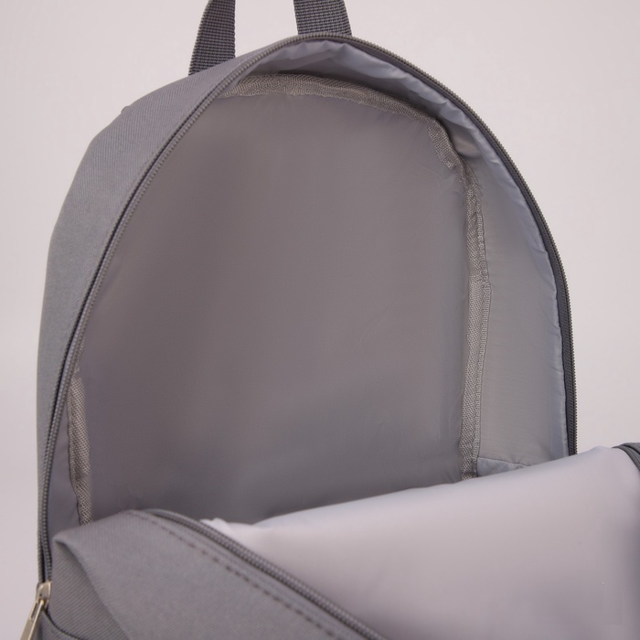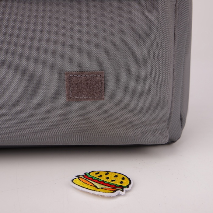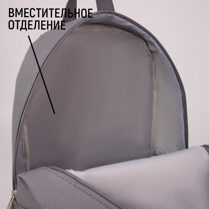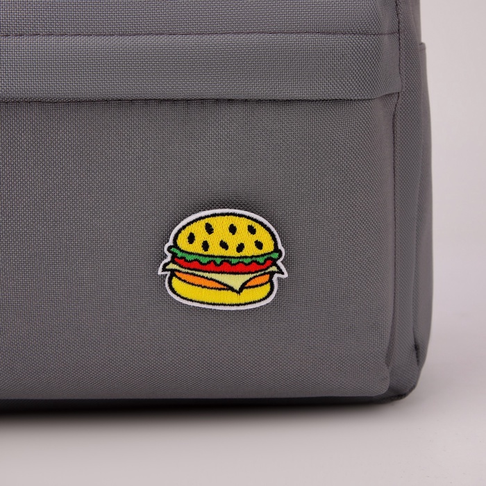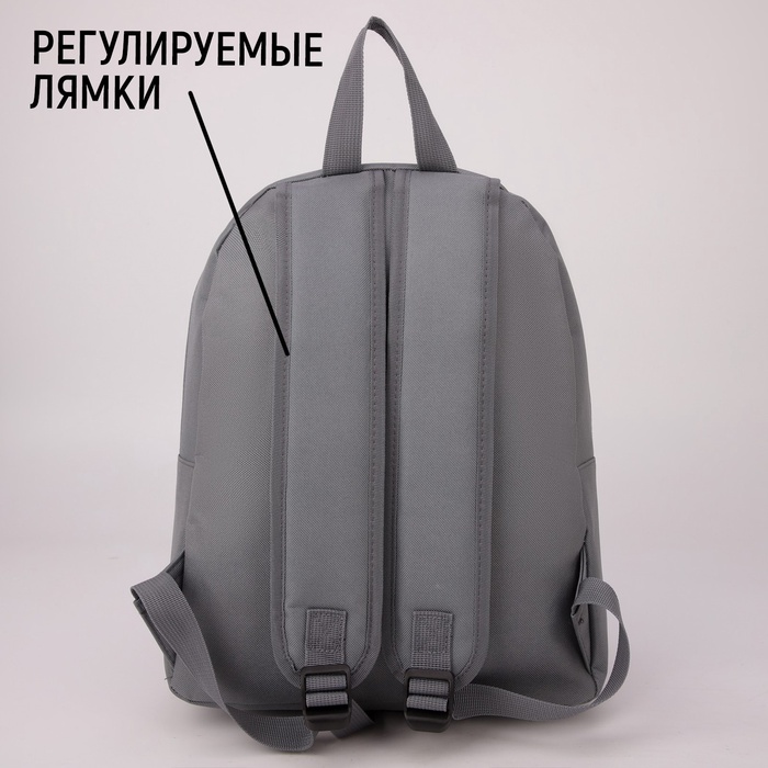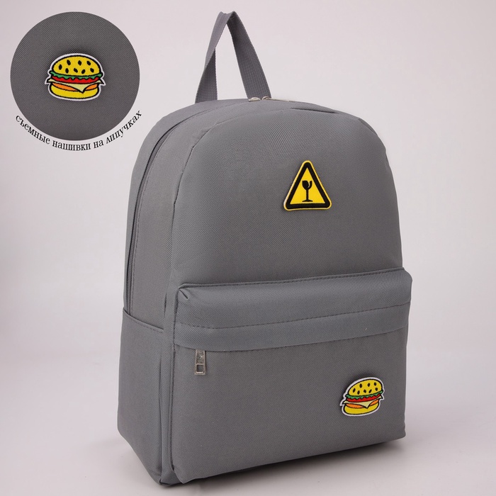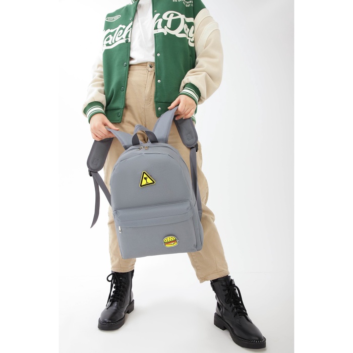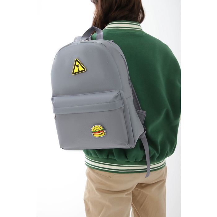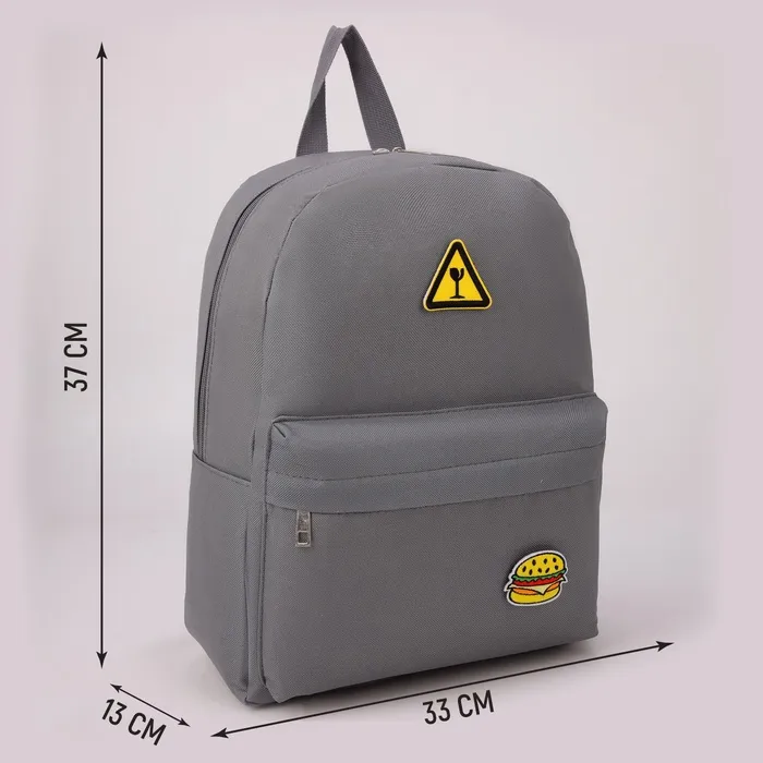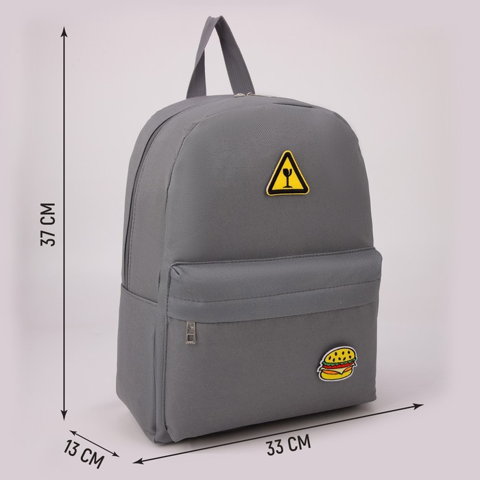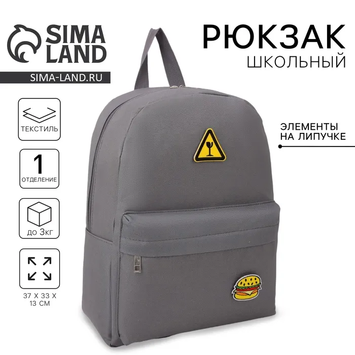 Рюкзак школьный текстильный «Значки», 37 х 33 х 17 см, с липучками, серый — Характеристики