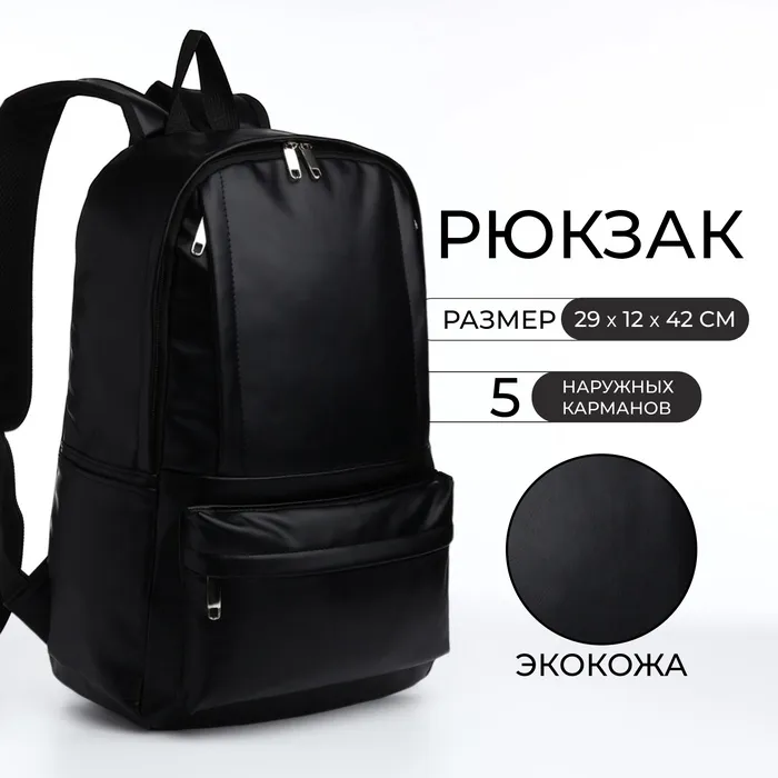 Рюкзак школьный Worlds с карманами, чёрный — Характеристики