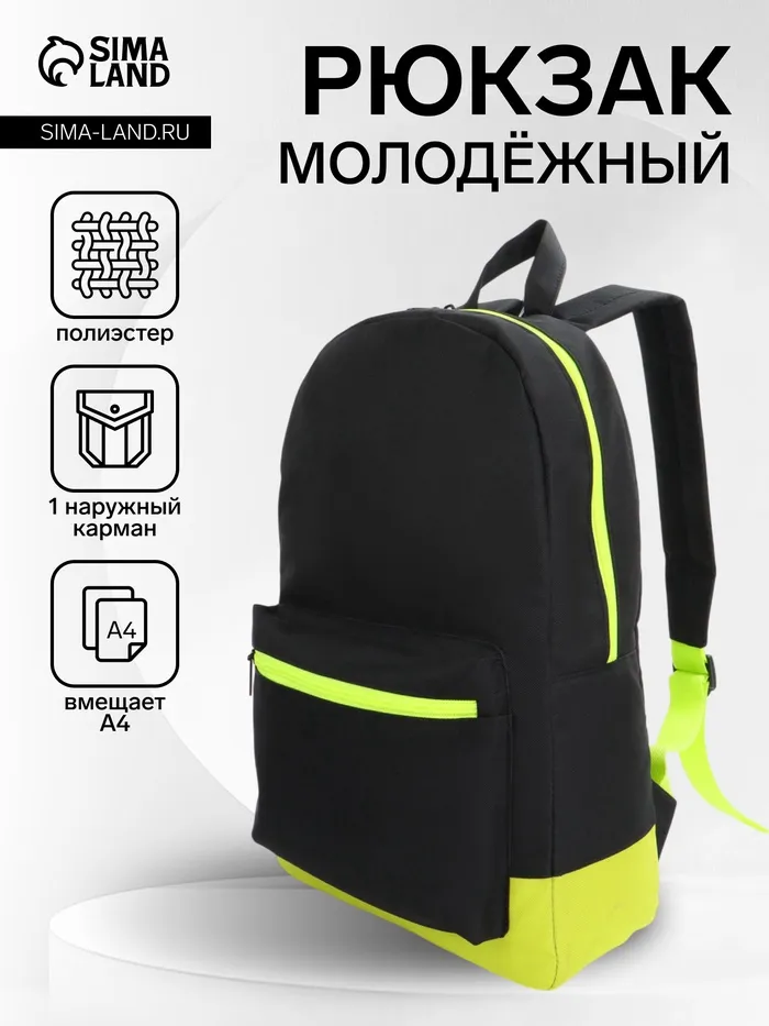 Рюкзак школьный «ЗФТС» на молнии, с карманом, чёрный/жёлтый — Характеристики