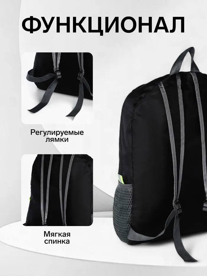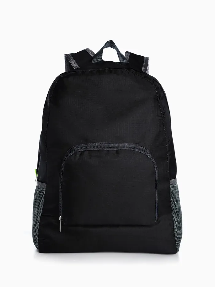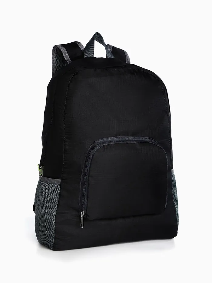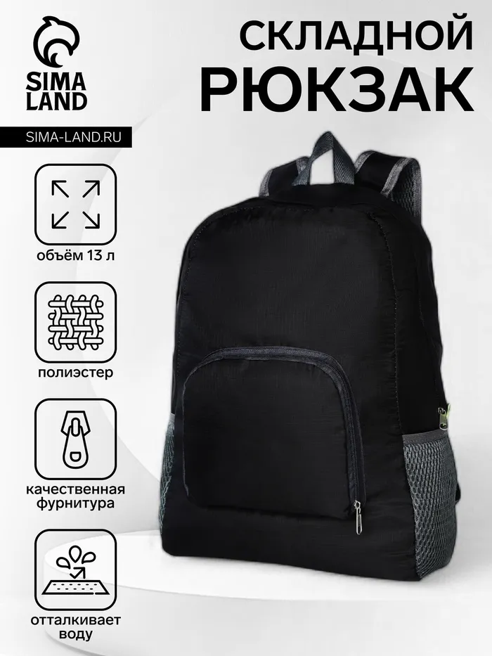 Рюкзак складной на молнии, 3 наружных кармана, цвет чёрный — Характеристики