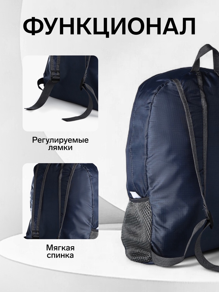 Рюкзак складной Theory на молнии, с карманами, серый — Характеристики