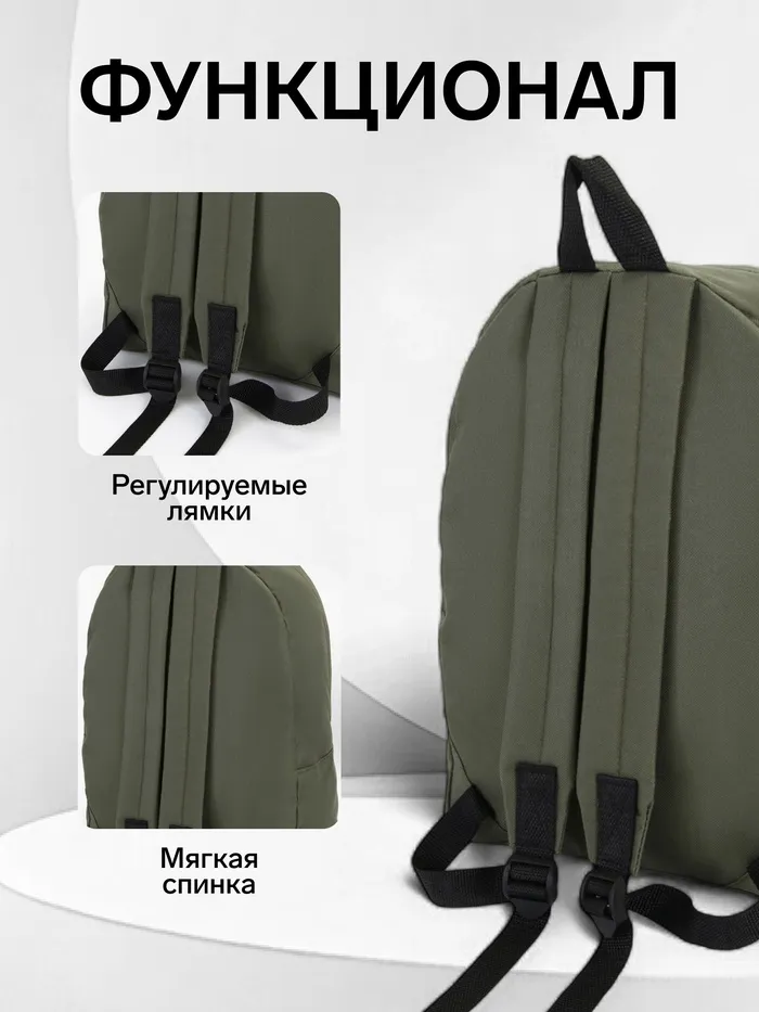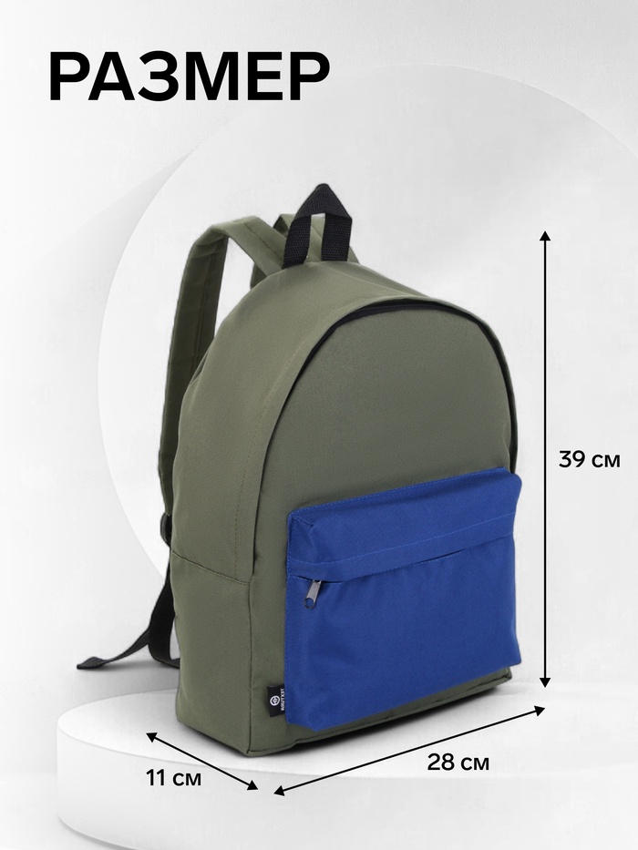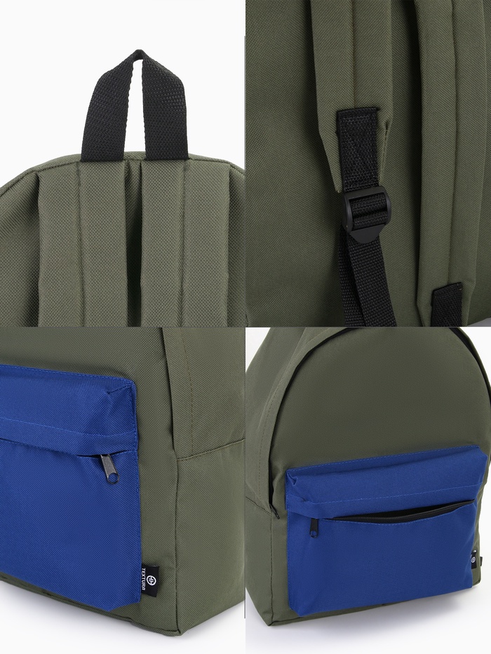 Рюкзак спортивный на молнии TEXTURA, с карманом, размер 28×11×39 см, хаки/синий — Характеристики