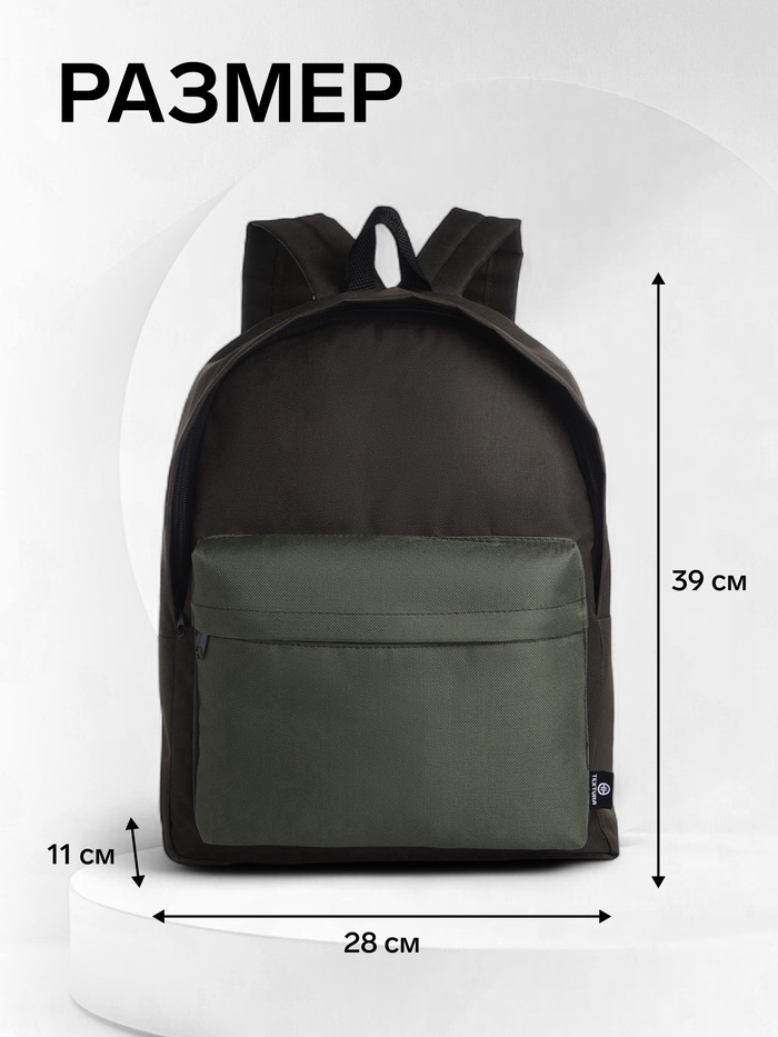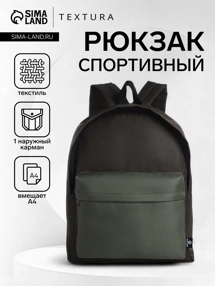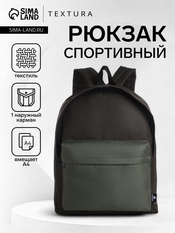 Рюкзак спортивный на молнии TEXTURA, с карманом, размер 28×11×39 см, зелёный/хаки — Характеристики
